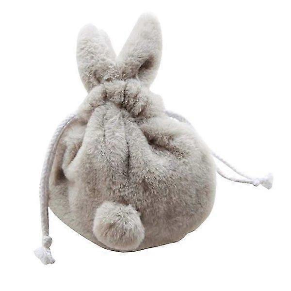 Gray Fluffy Plush Rabbit Drawstring Storage Bags, 10 x 7 inch Cosmetic Bag