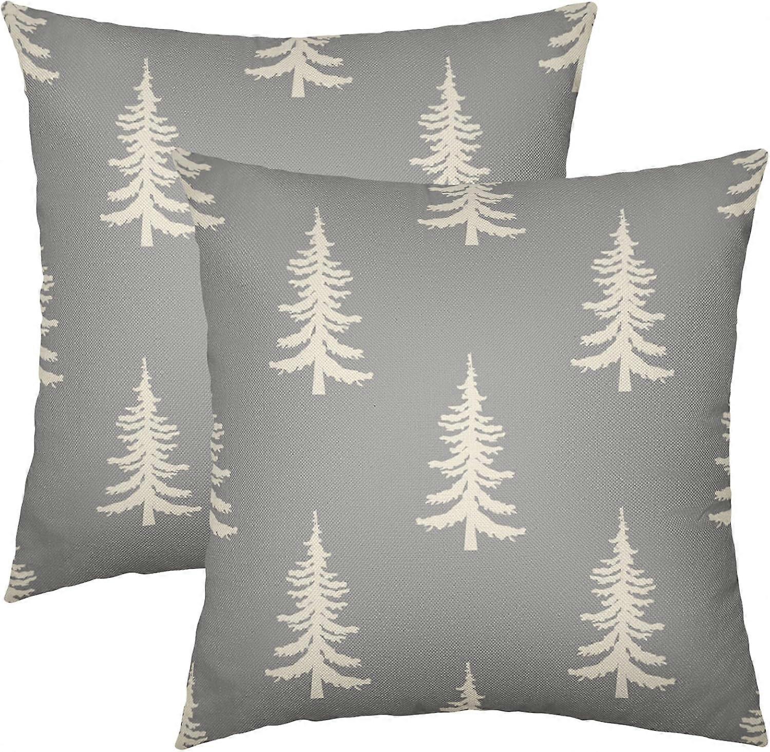 Grey Christmas Pillow Covers 18x18 Set of 2 Rustic Gray Xmas Decoration Tree Outdoor Decorative Throw Pillows Farmhouse Winter Pillowcases Linen Cushi