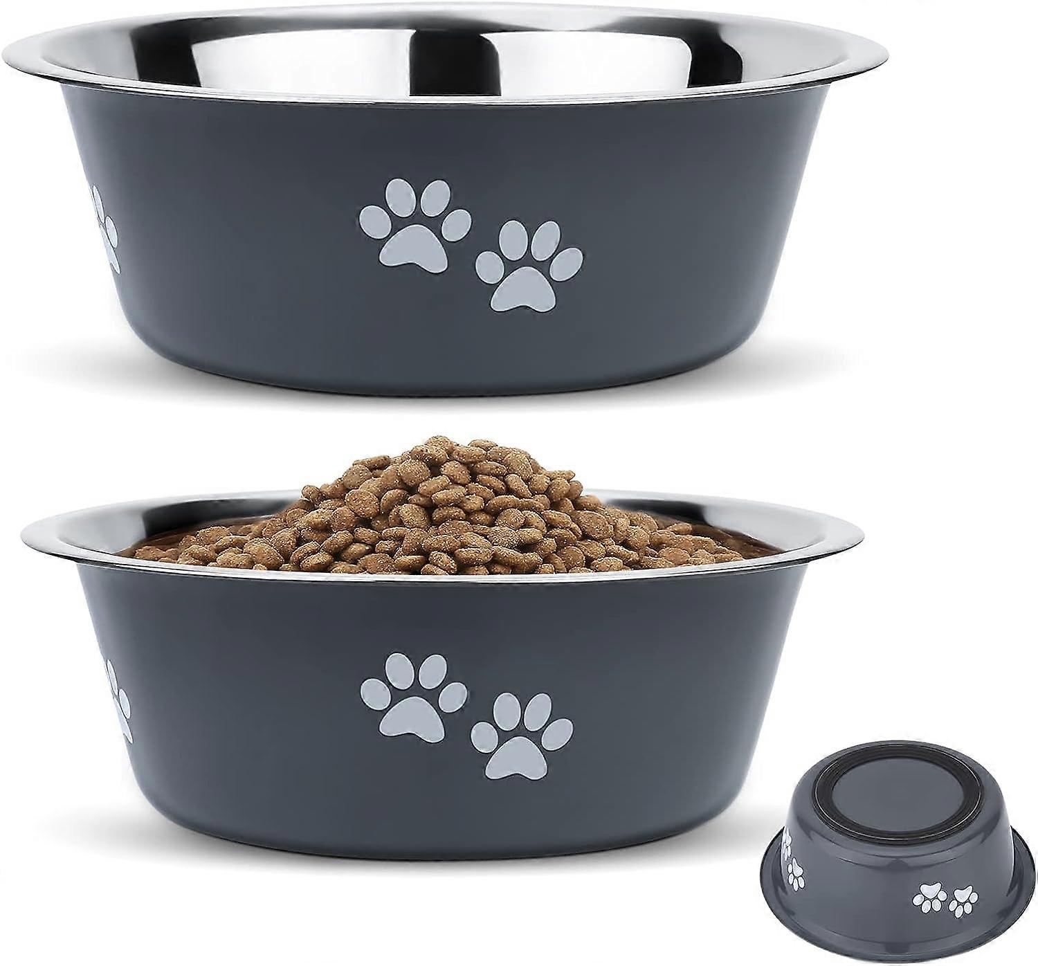 Gray Stainless Steel Dog Bowls (Pack of 1), Stainless Steel Non-Slip Silicone Bowls for Large/Medium/Small Dogs. Bowl mouth diameter: 17.5 cm, bowl de