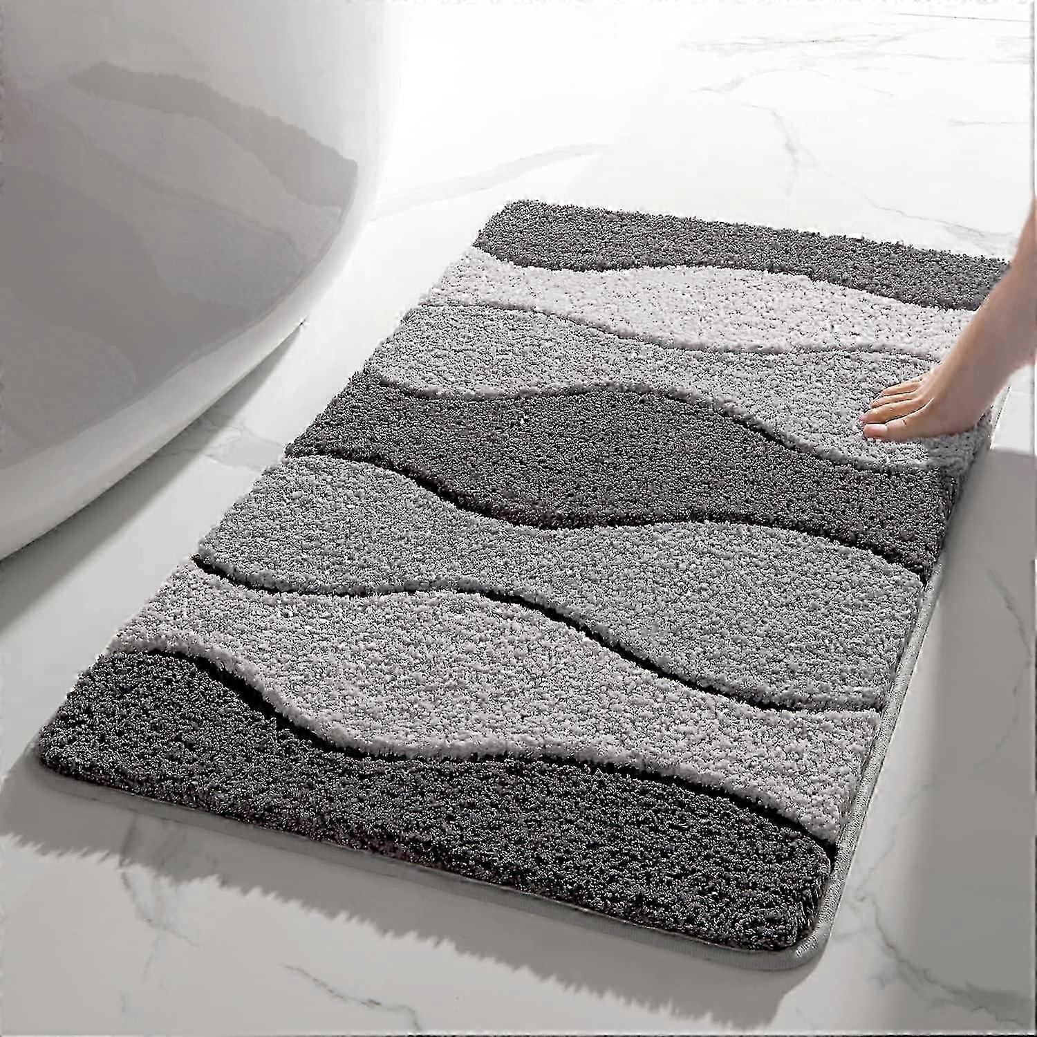 Gray Bathroom Rugs Non Slip Bathtub Mat in Grey Wave Design, Microfiber Floor Carpet, Super Absorbent Thick Plush Bath Rug, Machine Washable