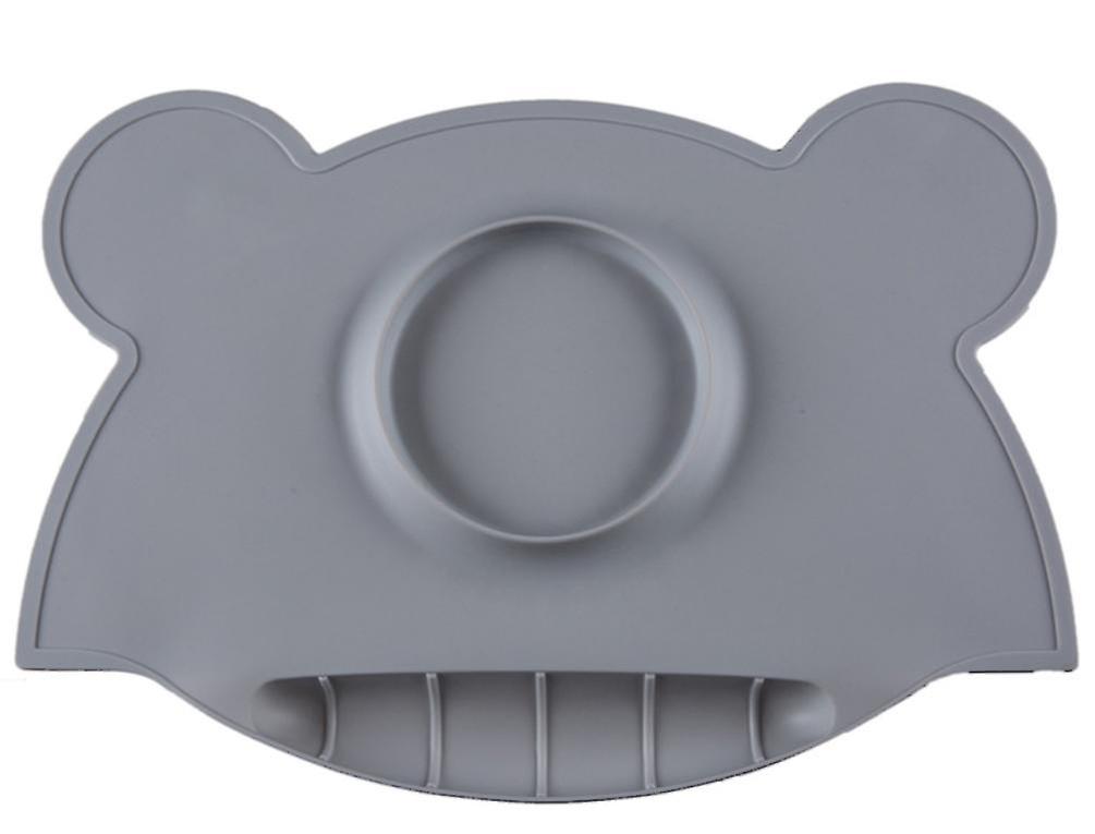 Gray Portable Baby Insulated Silicone Dinner Plate, Waterproof Placemat With Bowl Az14764