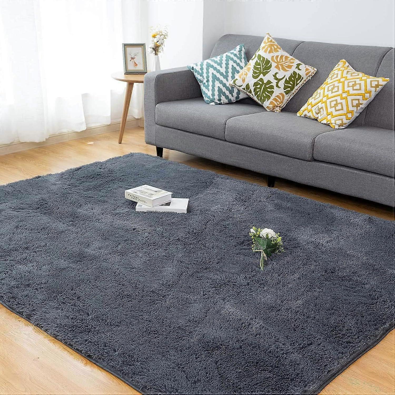 Gray Rugs Living Room Rug Super Soft Bedroom Large Rugs Anti Slip Rug Carpet(Grey 100 x 160cm)