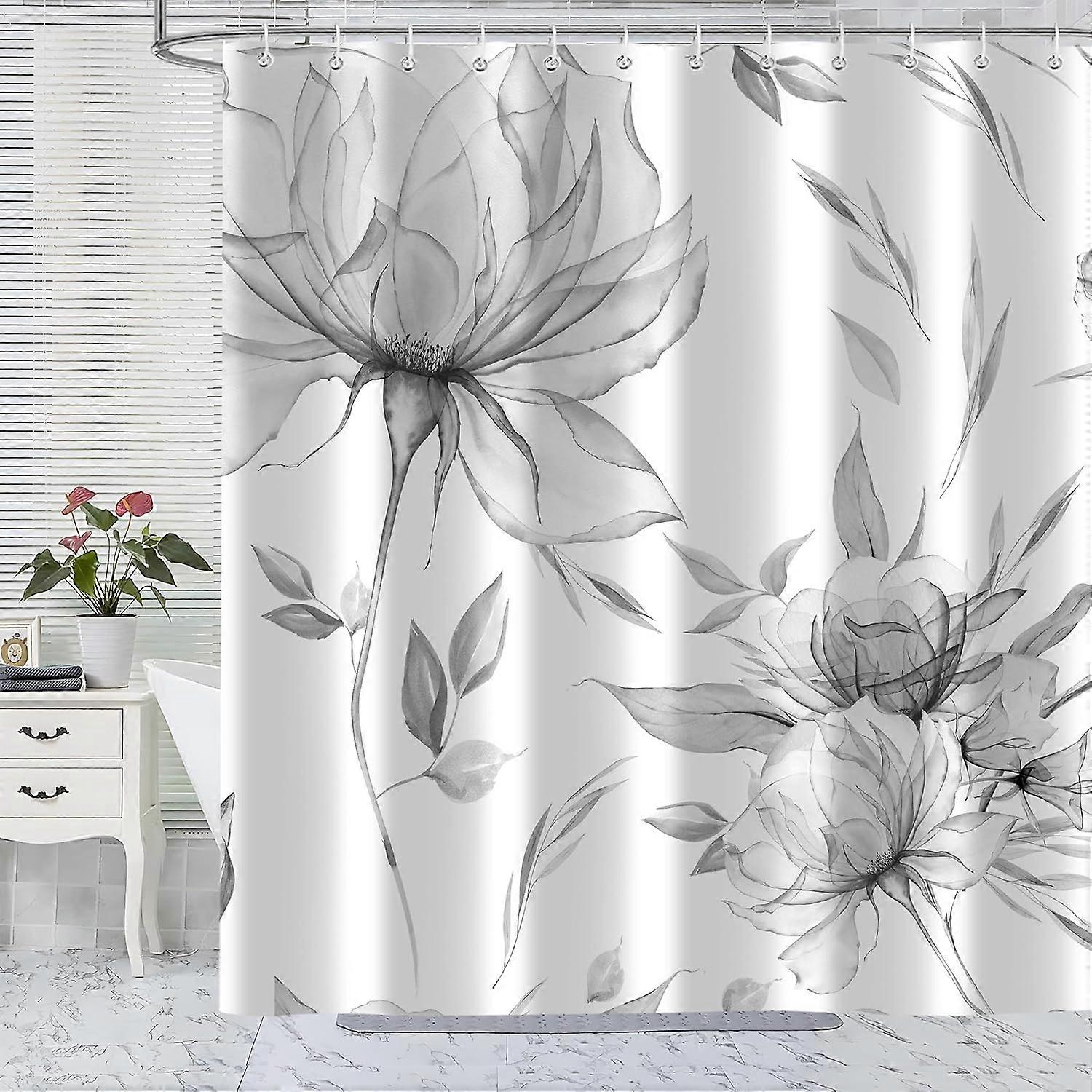 Grey Watercolor Floral Shower Curtain, Flower Leaves Minimalist Aesthetic Art Shower Curtains for Bathroom Sets Decor, Waterproof Polyester Cloth Fabr