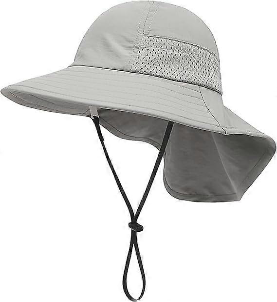 (Gray) Kids sun visor hats, girls and boys neck guard hats, kids fisherman hats, breathable beach hats, toddler summer hats
