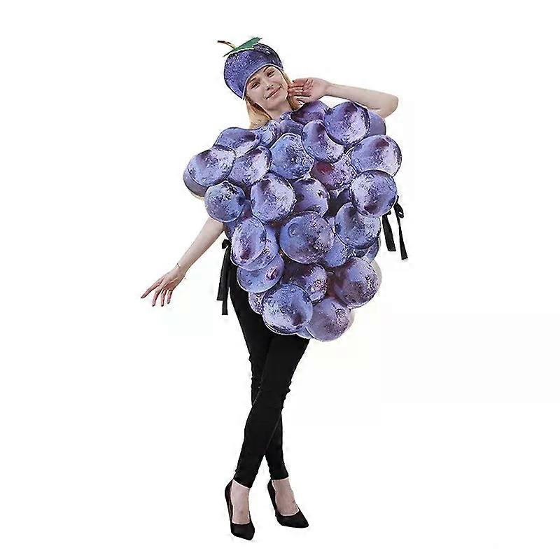 Grape Costume Sleeveless Vest with Hat Fruit Halloween Cosplay Costume for Women Men
