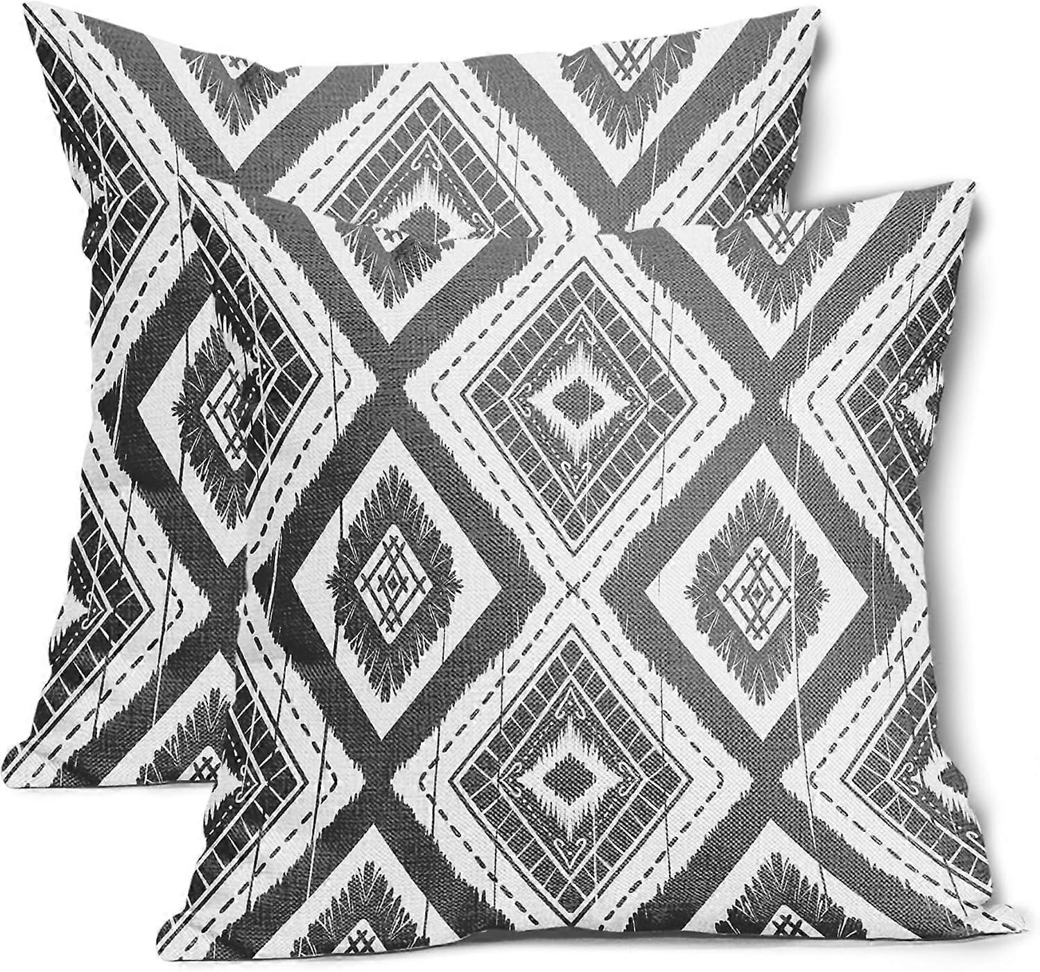 Grey White Geometric Pillow Covers 16X16 Inch Rustic Gray Ivory Diamond Ikat Couch Pillow Cases Boho Modern Chic Square Cushion Cover Set of 2 Home De