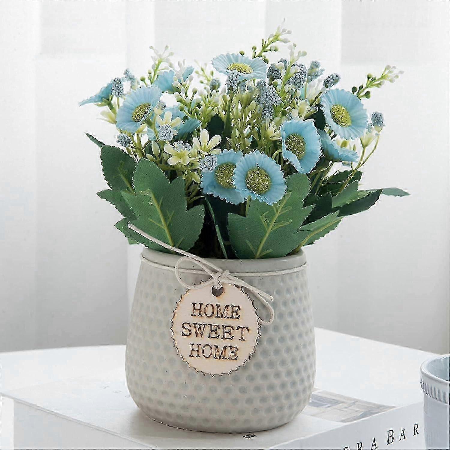 HIGH QUALITY MATERIALOur artificial flowers are made of high quality plastic and fabric, easy to clean and maintain. Soft and comfortable to the touch, environmentally friendly, durable and exquisite workmanship. Brighten up any spaceThese plants for bedroom, office and home decoration infuse to life in any room you place them in, for an instantly amazing difference! Enjoy the fresh mental clarity and boost that comes with setting up some beautiful greenery indoors, to enhance your living space. Easy Maintenance Save time and effort. money for maintenance. For those who are allergic to pollen and don't have time to tend to live plants, they don't need pruning or watering. It is easy to maintain and can be stored for a long time without fading. It is the perfect choice. Unique designexquisite potted daisies, white flowers and green leaves give people a fresh and natural feeling, making the room brighter, suitable for wedding decorations, to table settings and elegant home decorations. Wide range of use: fake plants decor indoors, no need to maintain or maintain them, won't die or fade and stay fresh all year round. Product Description home accessories full of color and style. Pretty little flower arrangements in vases - ideal little ornaments for the living room, bathroom accessories or window ornaments. Perfectly sized for a display case or in the caravan, these artificial flowers are superb. Fake flowers make great ornaments. Surprise someone you love with this unusual gift, mom, sister or just someone having a housewarming party - a special gift, a gift for the mother's day or teacher gift Attribute: Material: PE sheet, plastic ceramic pot Pot size: 18x15x10cm Color:White,Pink,Yellow,Gray,Blue Feature: 1.Made of good quality materials, makes plants look more realistic and indistinguishable from nature. 2.Our plant flower will never fade, it will not die, it will always be bright and beautiful. Moreover, it is easy to maintain and save your time. 3. Suitable for indoor, home, kitchen, window sill, living room, window frame, dining table, office, balcony, bedroom, birthday, Valentine's Day Valentine's Day or Christmas decoration Tips: Artificial flowers may be crushed and deformed during transportation, but they will recover their shape with a slight adjustment after they are exhibited. In severe cases, blow with a hair dryer or leave aside for hours, the flowers will be more vivid. Dust will accumulate if left in place for a very long time , we suggest that you do not wash it with your hands and do not wash it too often. Please do not expose it to strong sunshine. Package includes: -1 x Ceramic Plastic Pot and Plant