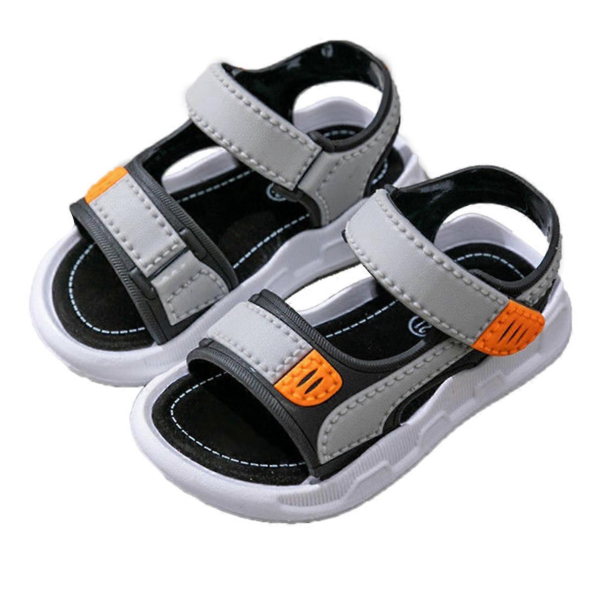 Gray 15cm Boy Sandal Slip Prevention Soft Beach Opened Toe Hook Loop Children Flat Sandal for Kids