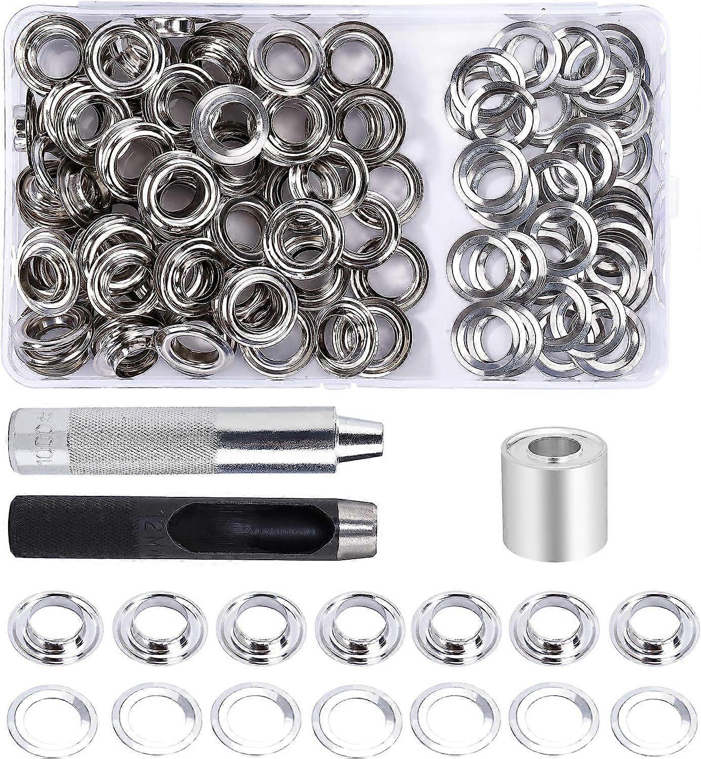 Grommet Eyelets Tool Kit 12Mm 100 Sets Grommet Eyelets With 3Pcs Grommet Eyelet Tools And Diy Craft Fabric Tarp Storage Box