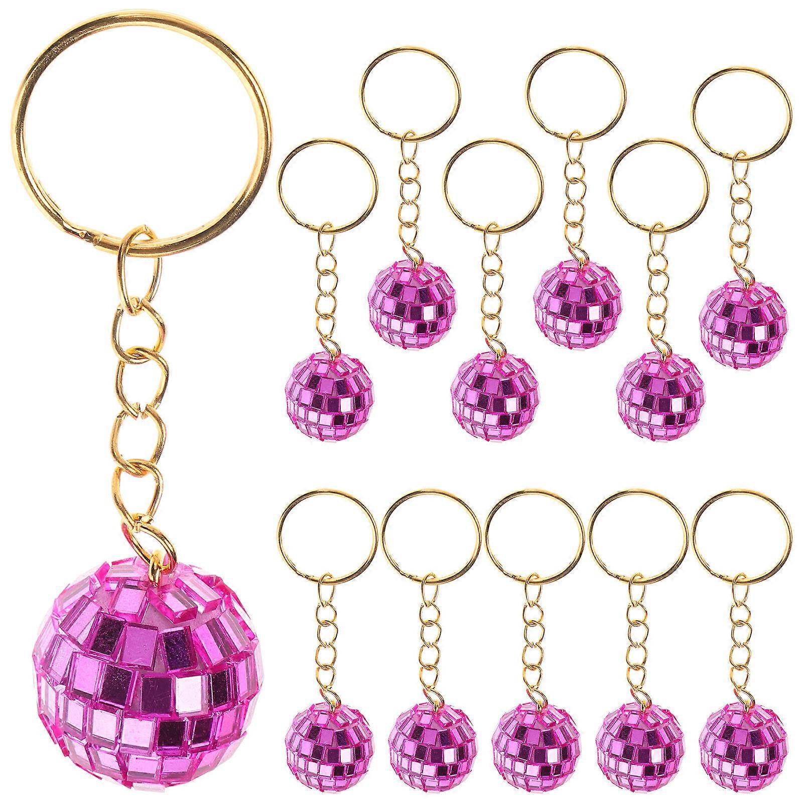 Globe Keychains Mini Disco Balls Party Favor Keychain Rosy Plastic 12Pcs