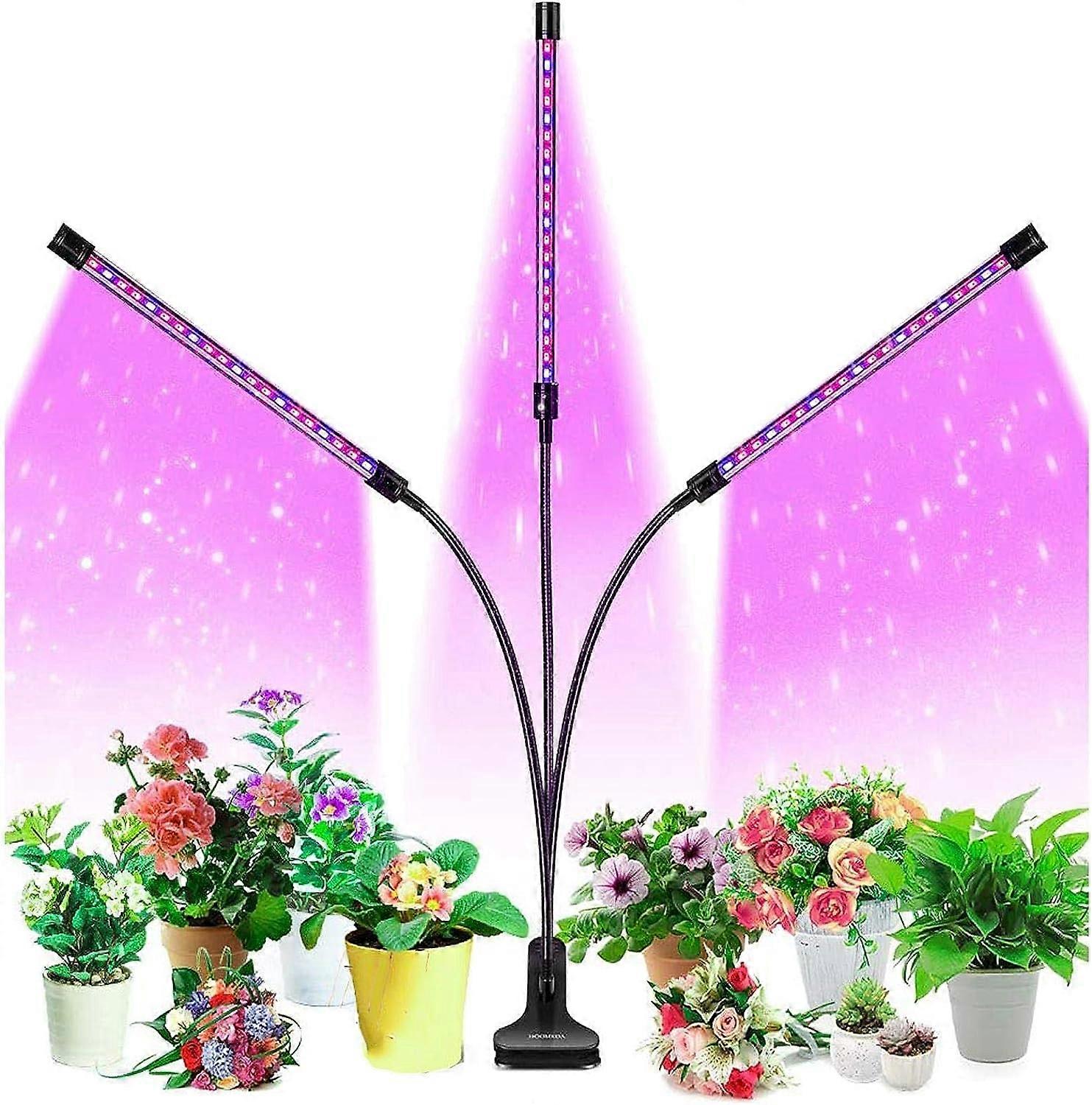 Grow Light, 50W Three Heads Timing LED 10 Dimmable Levels, Indoor Plant Grow Light, Red and Blue Spectrum, Adjustable Gooseneck