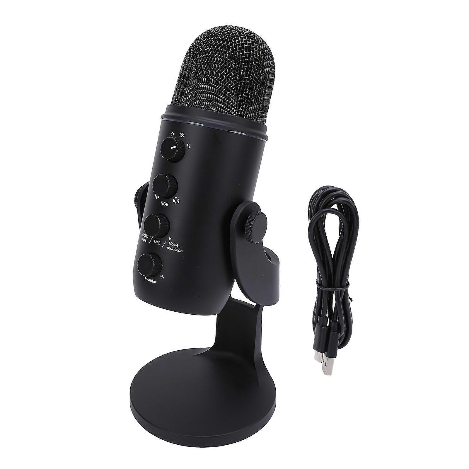 Product Description: Gaming Microphone USB PC Condenser Mic with Quick Mute Function and Colorful Ambient Light - Black