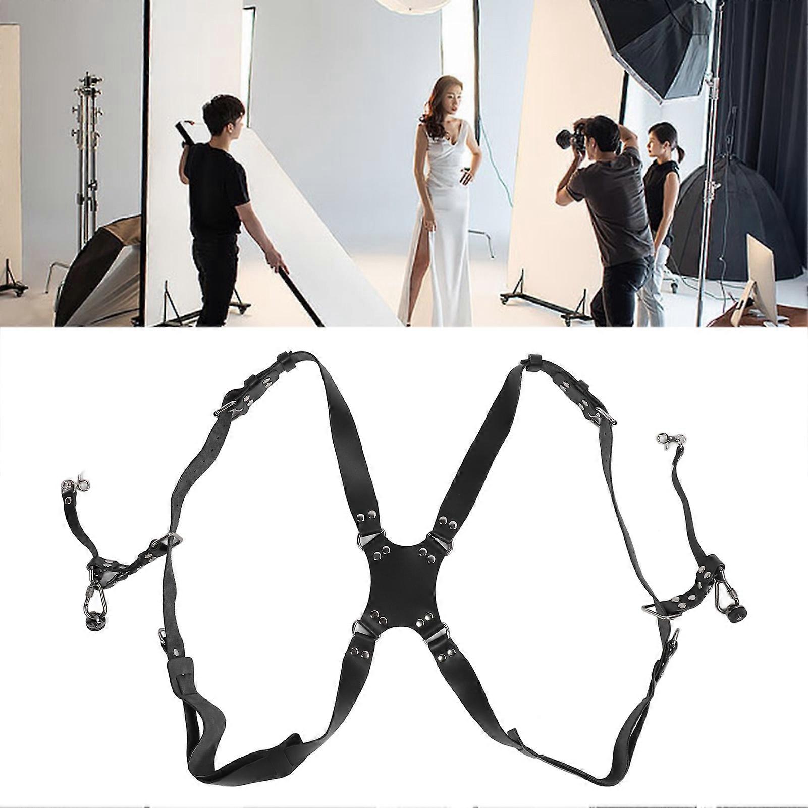 Camera Harness Shoulder Strap with Quick Release Buckles Adjustable Dual Shoulder Leather Camera Strap for DSLR SLR for Photographers Black