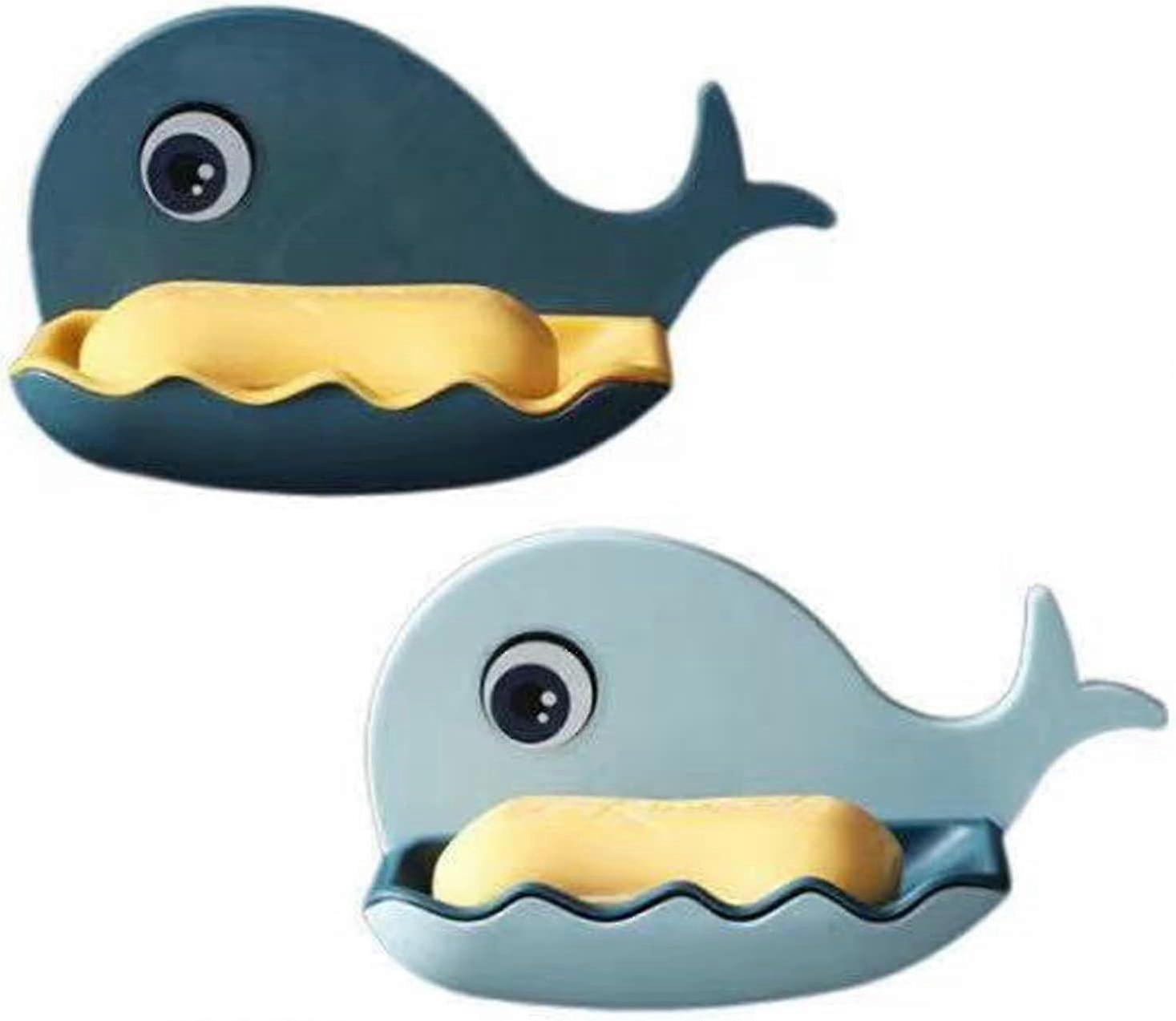 Whale Soap Dish, Wall Mount Soap Holder, No Drill Soap Dispenser, Rubber Soap Box with Drain Holes for Bathroom Kitchen