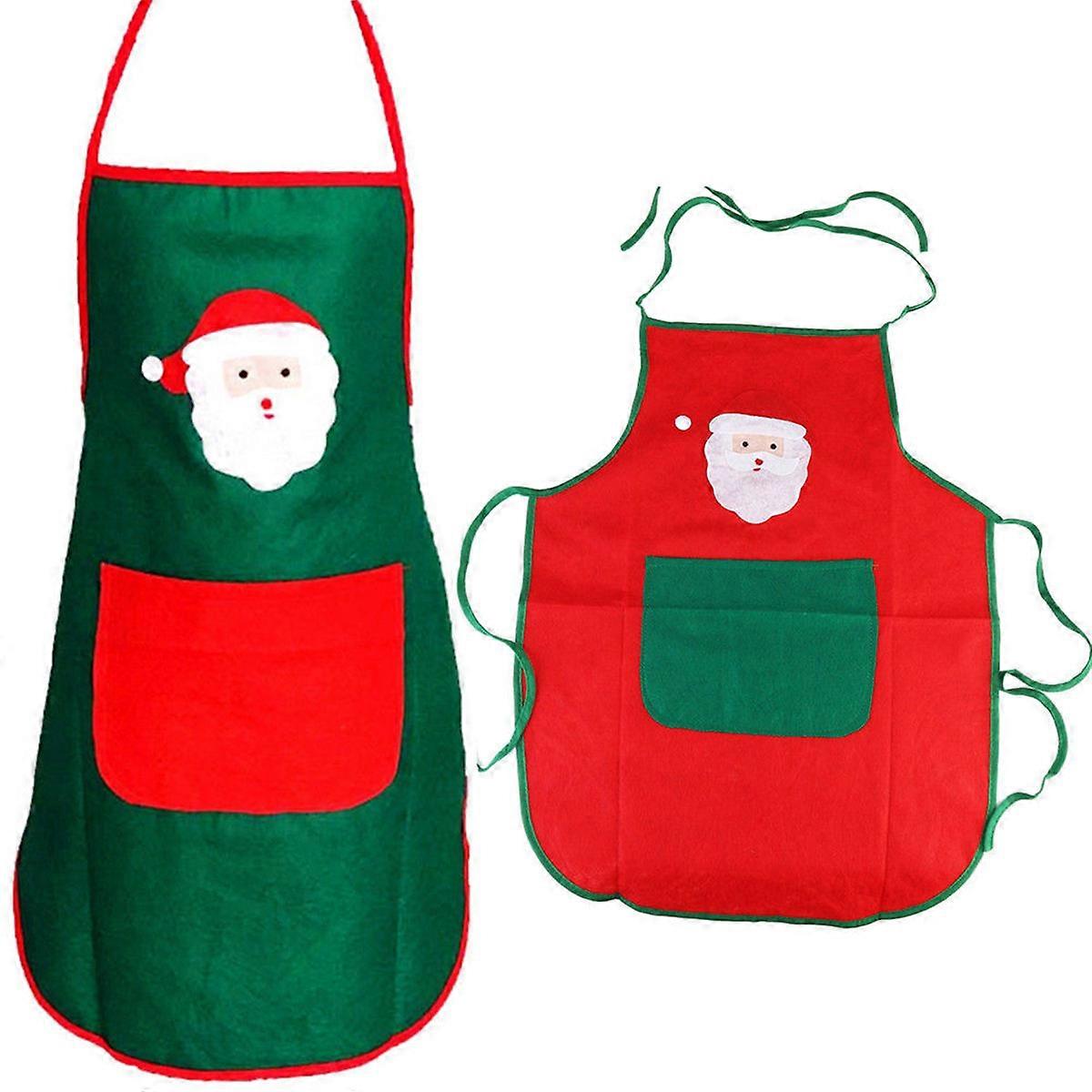 Cooking Apron Set 2Pcs Xmas Santa Sleeveless Design For Home Restaurant Use 70x50cm Assorted Color Adjustable Straps