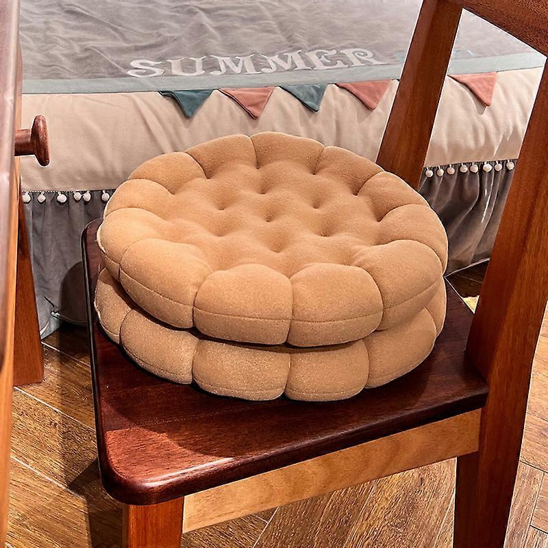 Cookie Cushion Cute Soft Breathable PP Cotton Filling Seating Cushion for Dormitory Bedroom Bedside 450g Apricot