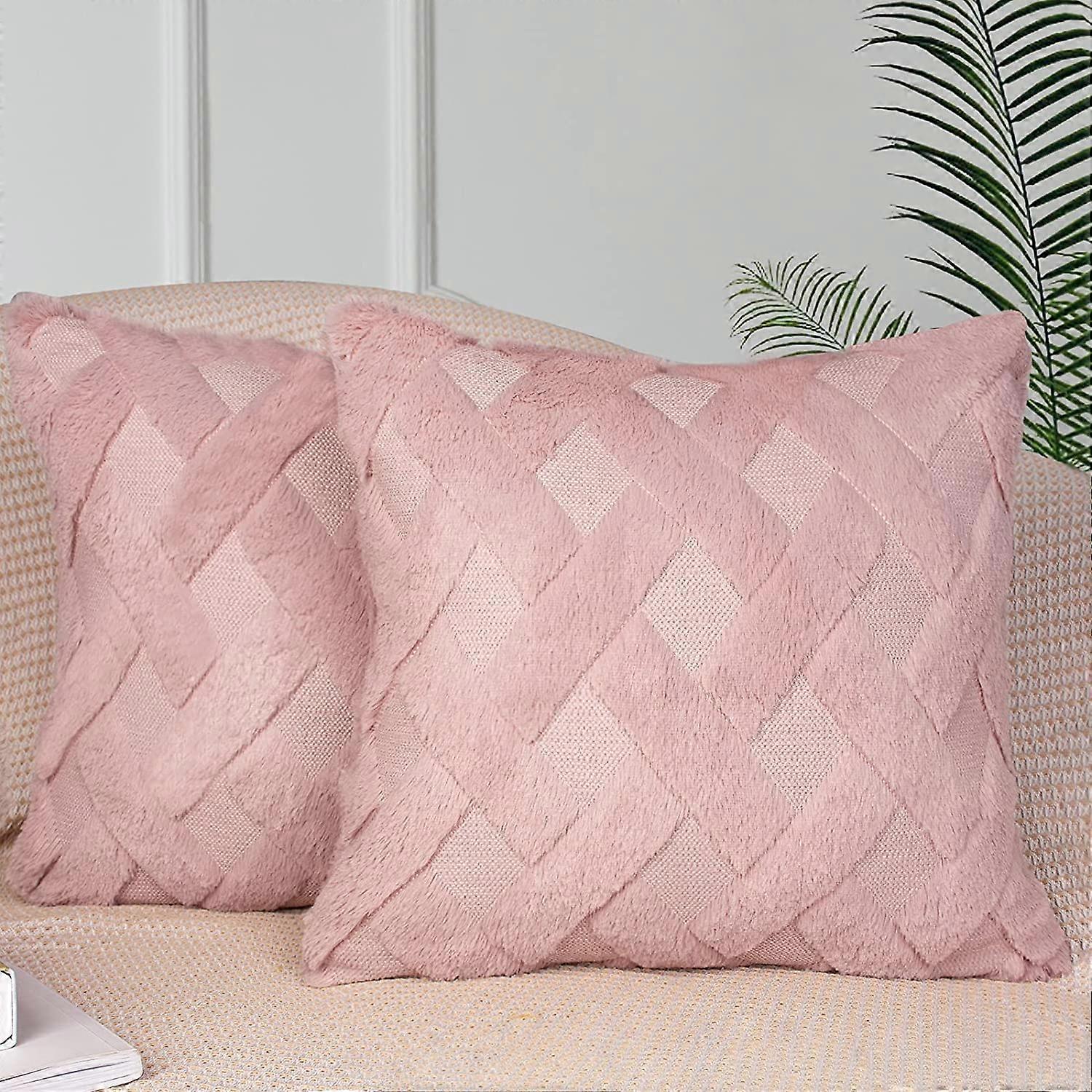 Cushion and Cushion Cover Set of 2 Pink Cushion Covers 45x45cm, Farmhouse Decorative Cushion Covers with Luxury Wool Velvet Square Pillow Cases for So