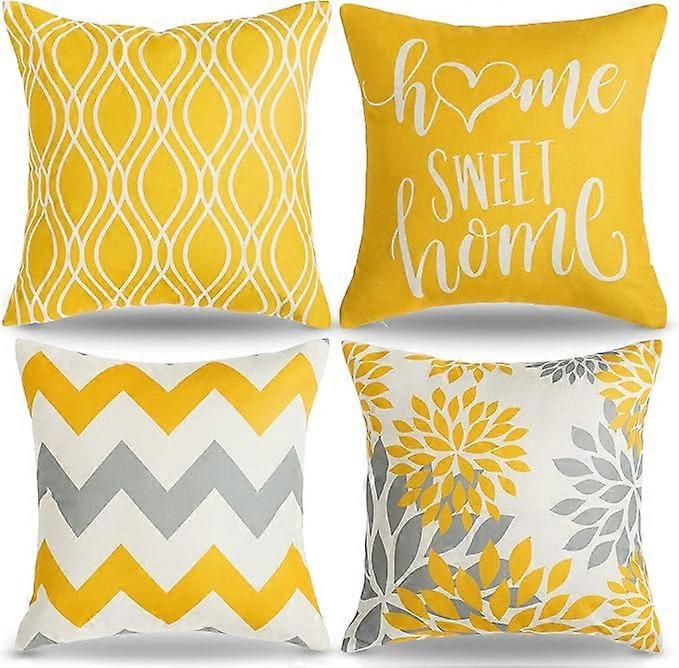 Cushion Cover Geometric Pattern Decorative Cushion Yellow Sofa Cushion for Sofa Home Living Room Bedroom Home Decor, 45x45cm