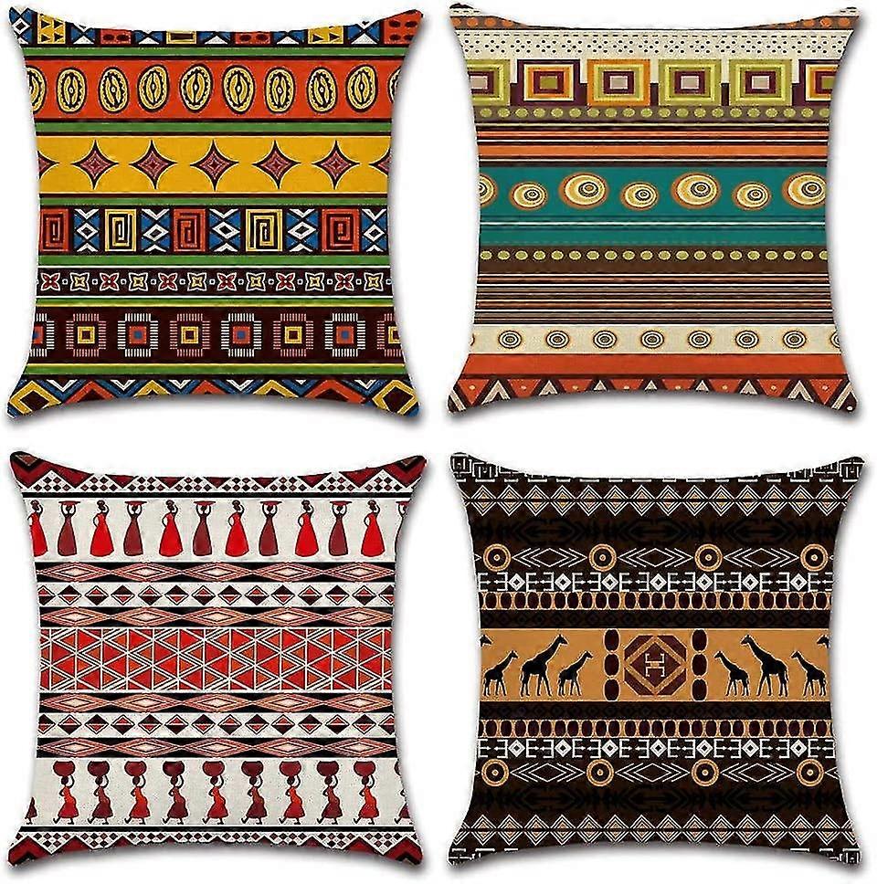 Cushion Cover - Set of 4 Ethnic Style Decorative Pillow Cases for Sofa, Bedroom, Home (45 x 45 cm)