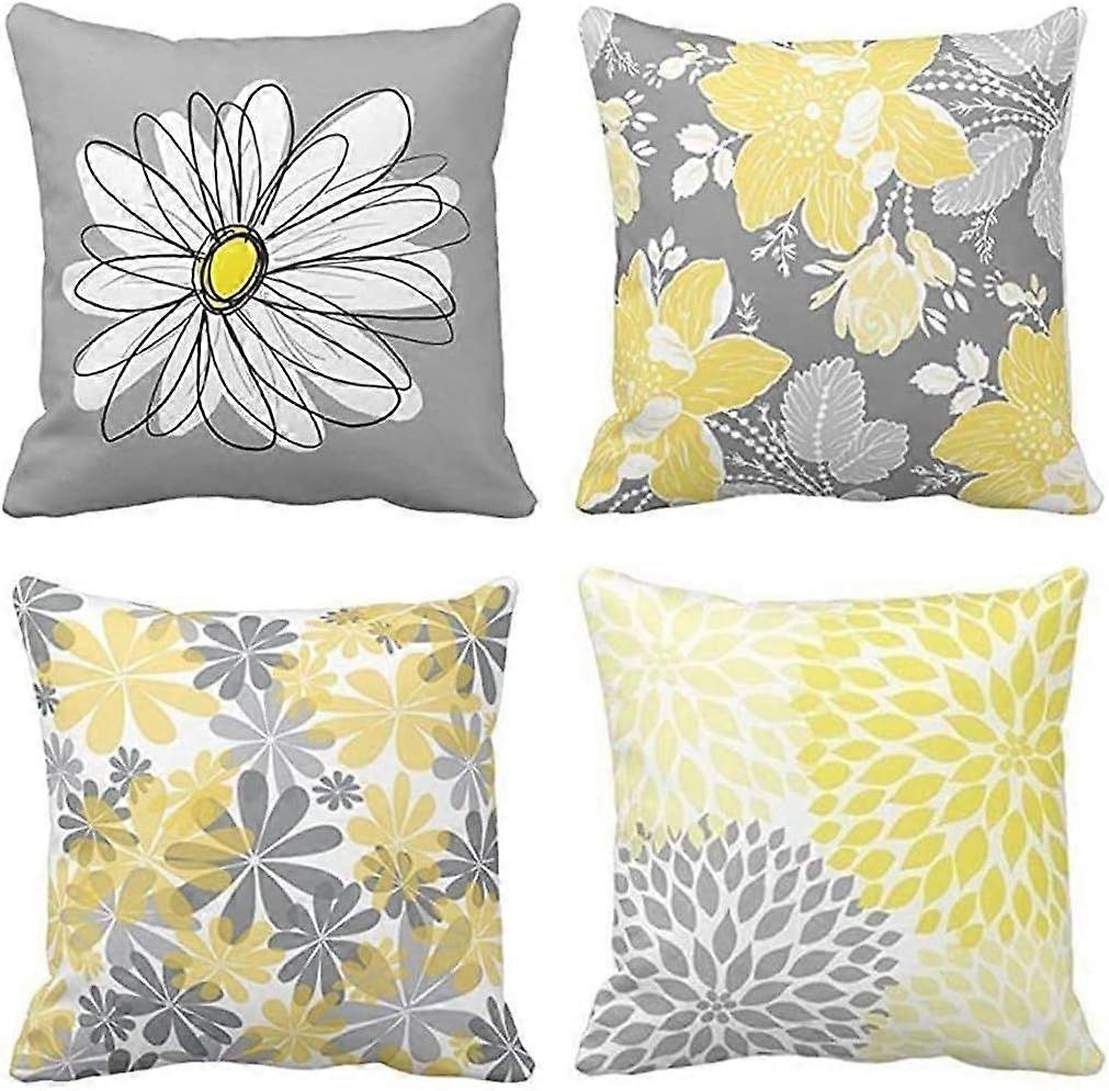 Set of 4 cushion covers 45x45cm Modern grey and yellow flowers daisies