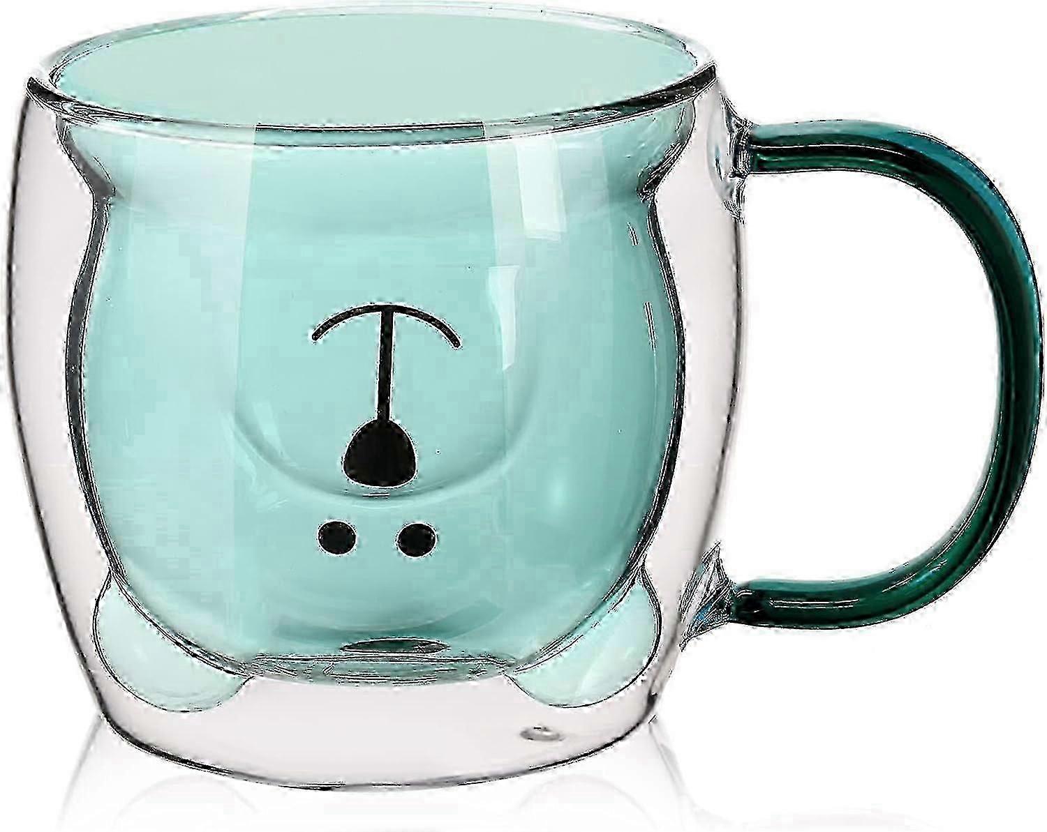 Bear Tea Cup - Double Wall Glass Mug, Insulated for Coffee/Beer, Christmas Gift - Green