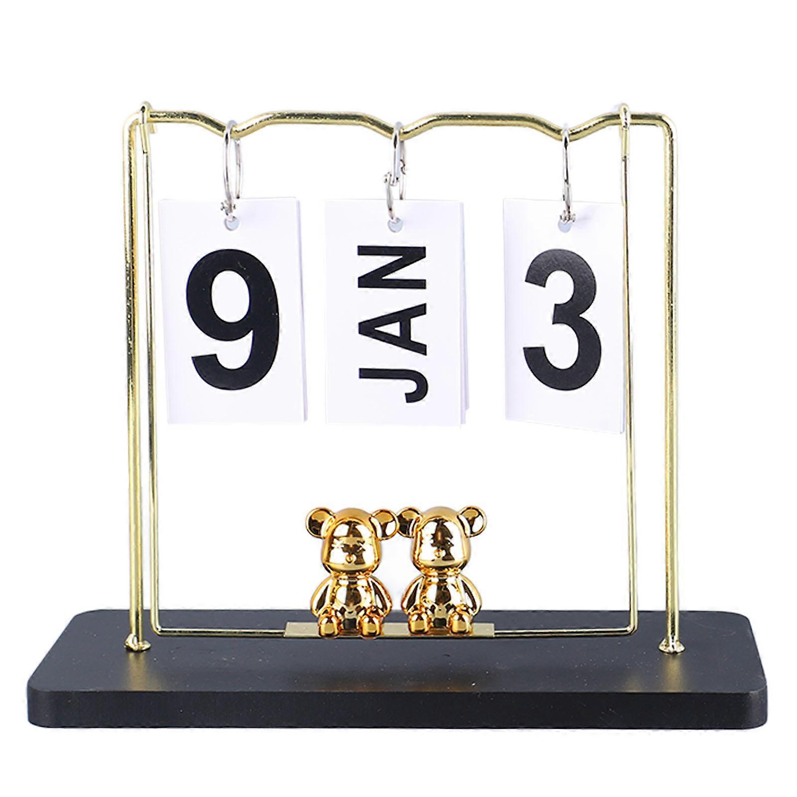 Bear Wooden Metal Flip Calendar Daily Flip Calendar Reusable Perpetual Calendar Desktop Flip Calendar for Office Dormitory Black Swing