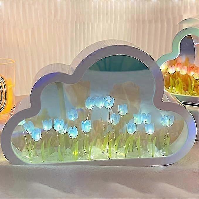 Cloud Tulip Lamp, DIY Cloud Tulip Mirror Night Light Simulation Flower Bedroom Sleeping Table Lamp Bedside Desktop Ornaments for Teen Girls