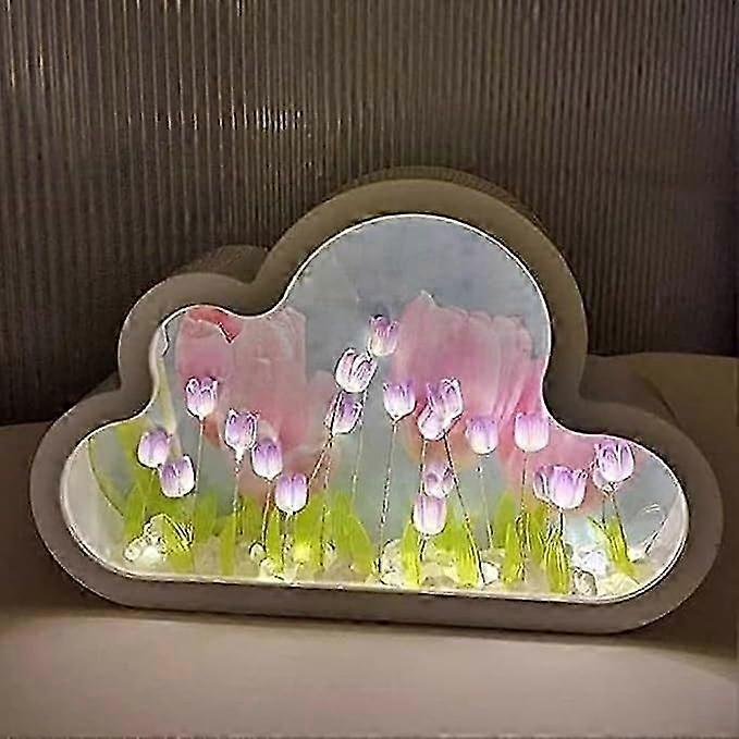 Cloud Tulip Lamp, DIY Cloud Tulip Mirror Night Light Simulation Flower Bedroom Sleeping Table Lamp Bedside Desktop Ornaments for Teen Girls
