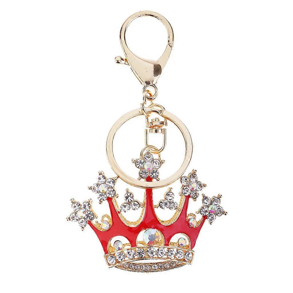 Crown Crystal Keychain Keyring Car Key Chain DIY for Women Bag Pendent Red