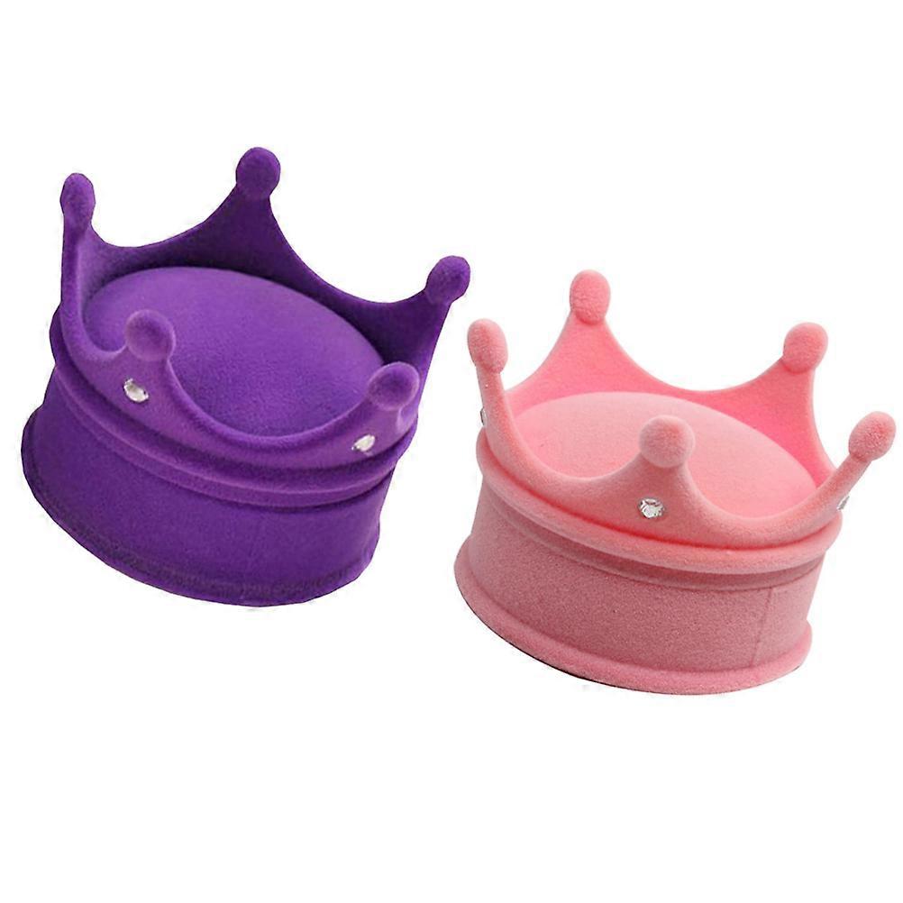 Crown Shaped Earring Case Jewelry Box Storage Blue Pink 2Pcs