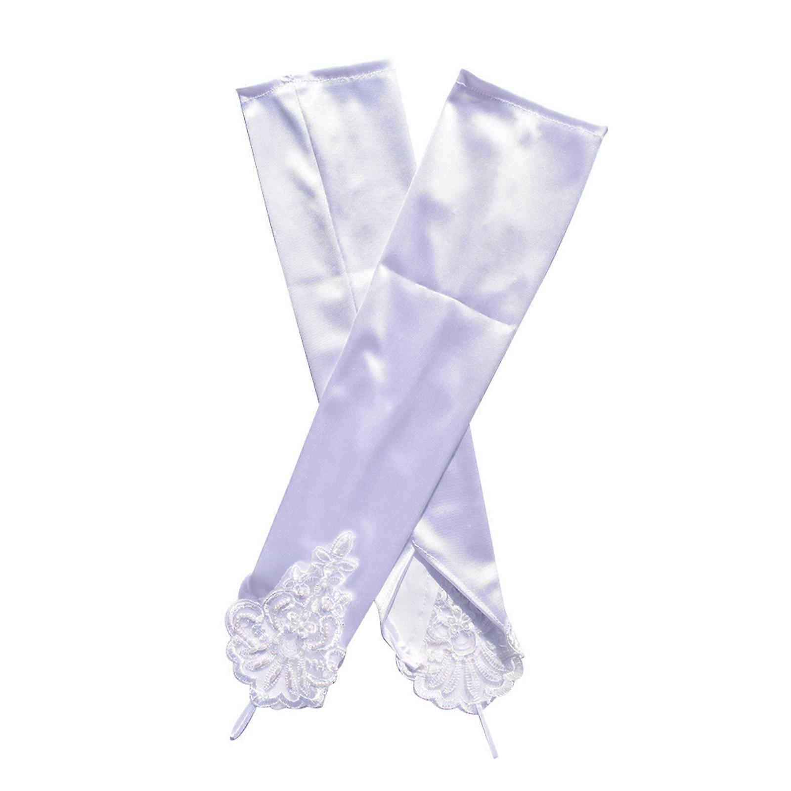 Classical Satined Dress Gloves Long Fingerless Gloves for Female 1920S Theme Event Weddings and Social Gathering Supply White