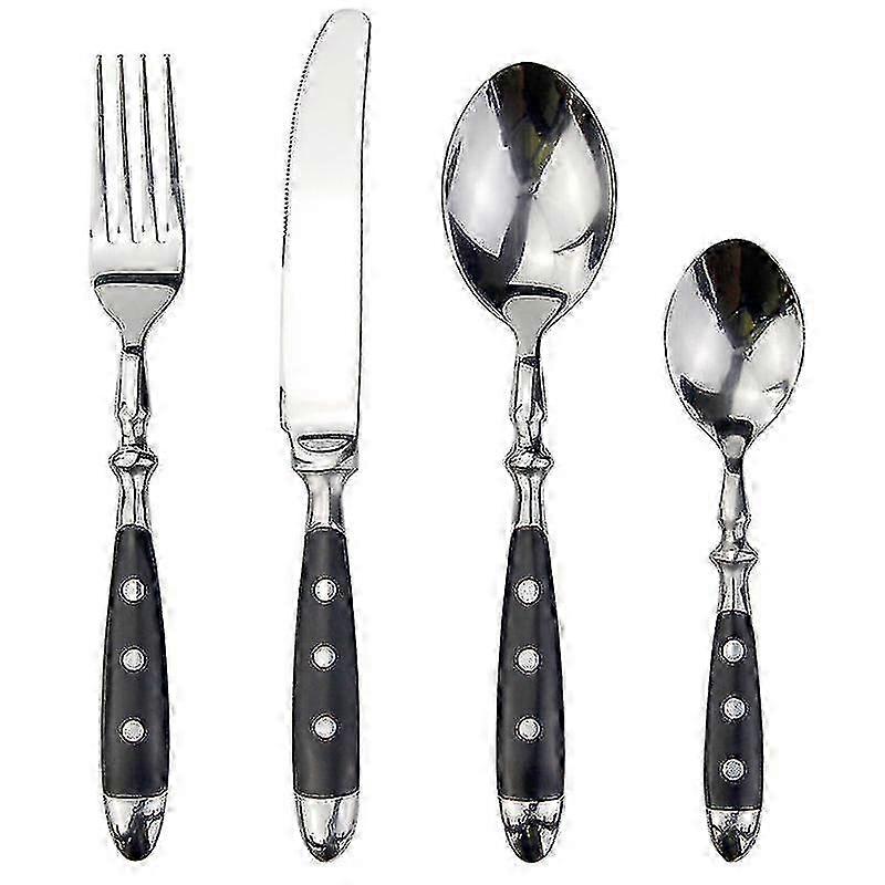 Classic Elegant Resin Rivets Handle Stainless Steel Western Cutlery 4-in-1 Set Delicate Utensils Dinnerware for Home