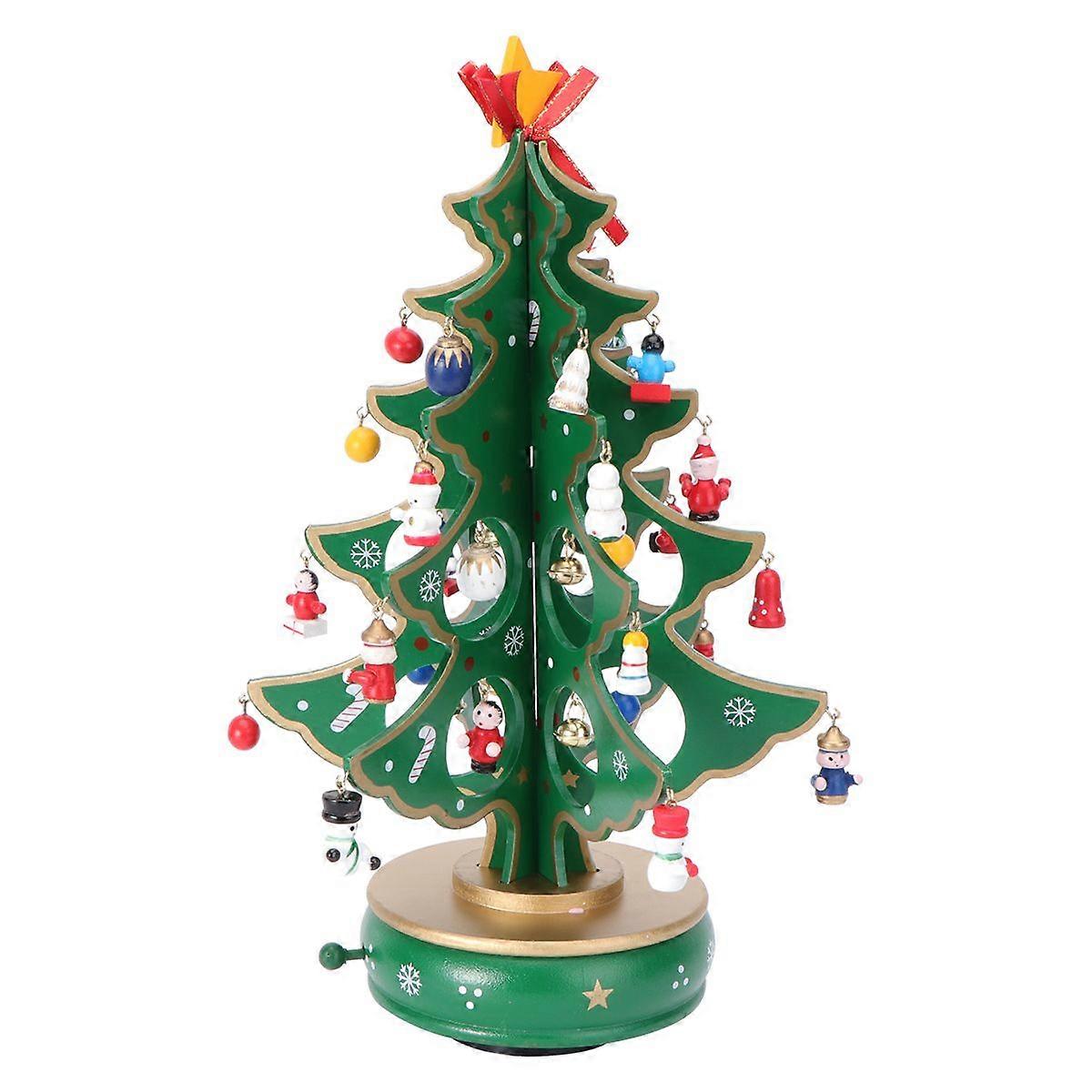 Classic Music Box Wooden Clockwork Design Christmas Tree With Pendants Miniature Handmade Music Box For Birthday Valentine's Gift (Green)