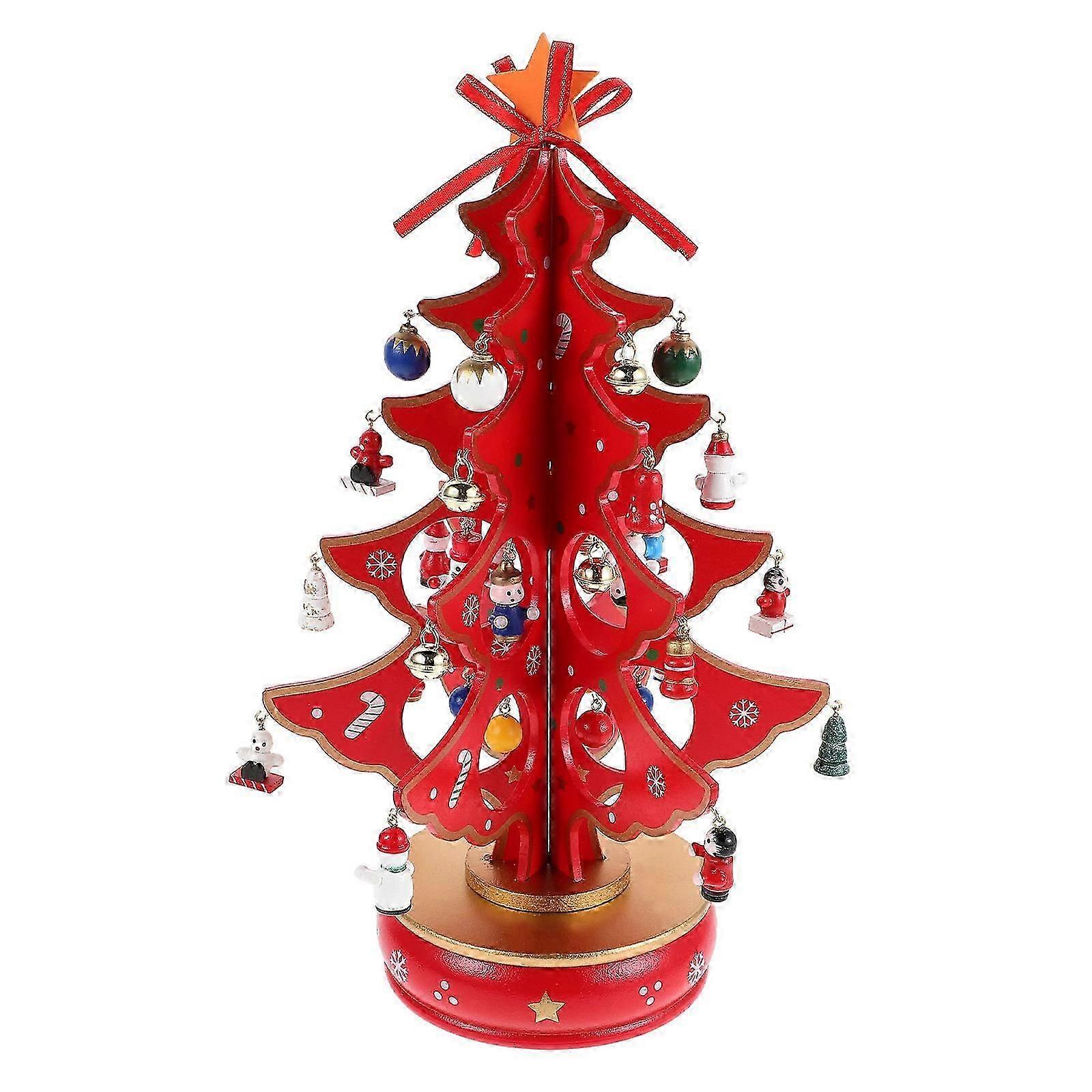 Classic Music Box Wooden Clockwork Design Christmas Tree With Pendants Miniature Handmade Music Box For Birthday Valentine Gift Red
