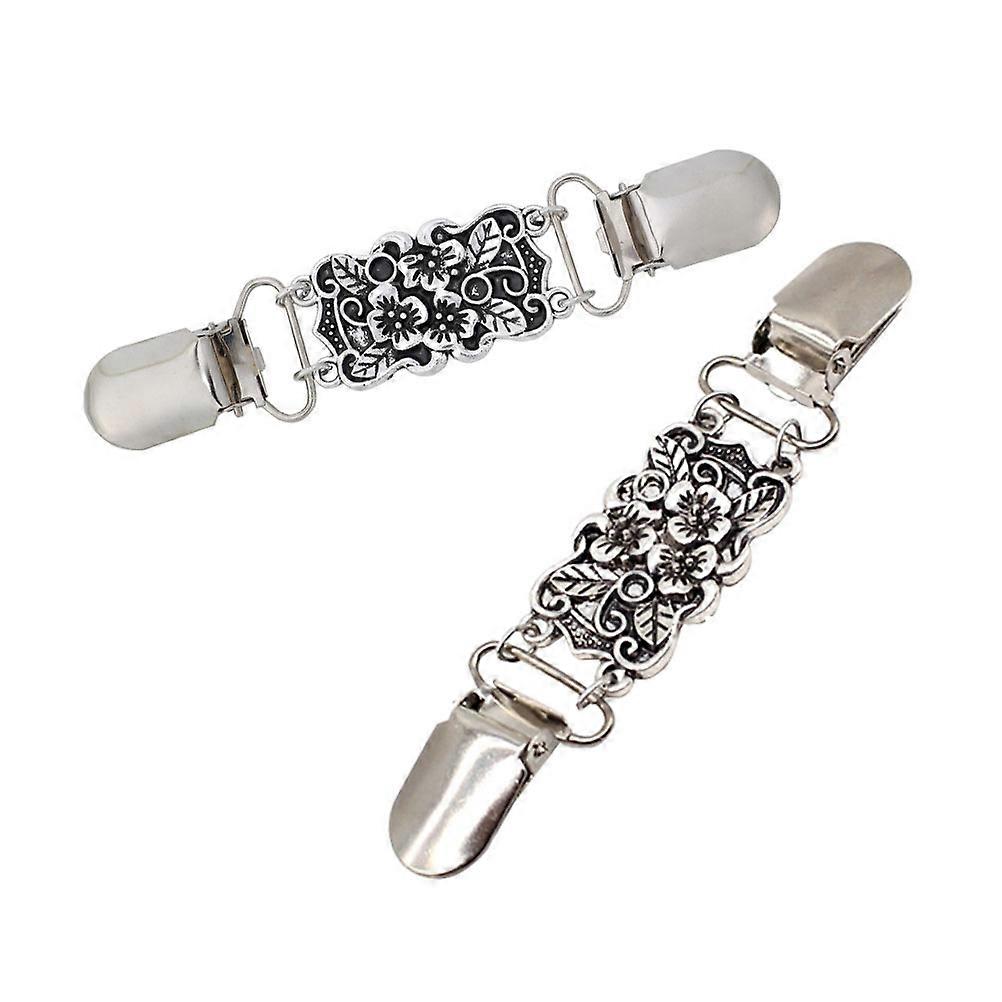 Classic Sweater Clips Cardigan Clips Women Office Wear Silver Zinc Alloy 2Pcs