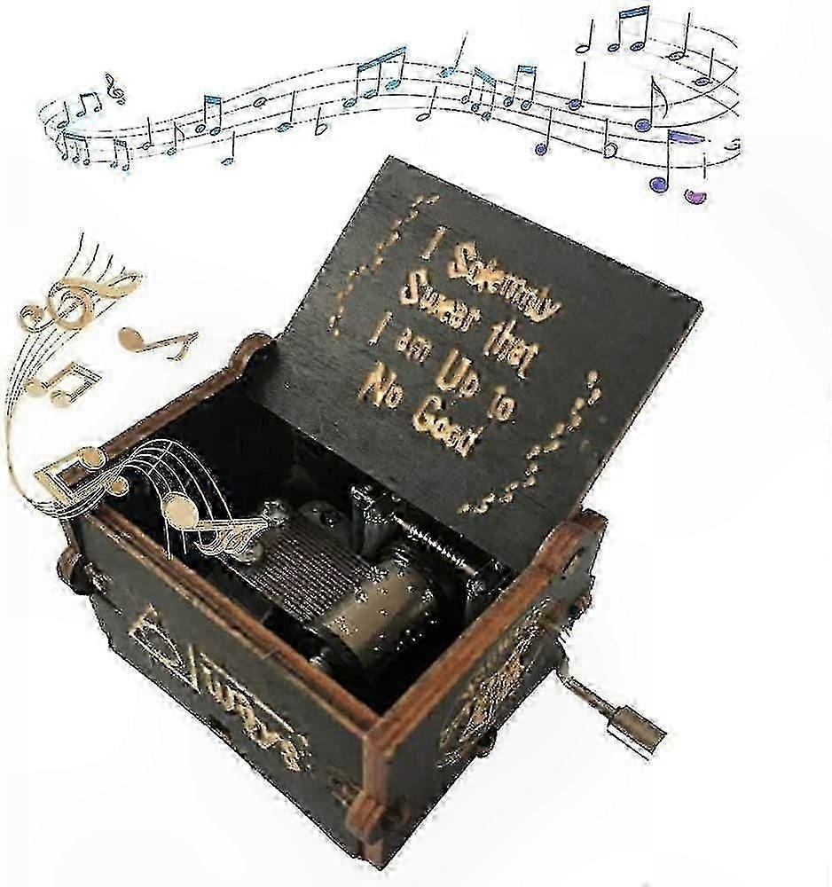 Vintage Wooden Music Box with Classic Melody Theme, Elegant Handcrafted Decorative Gift (Black)