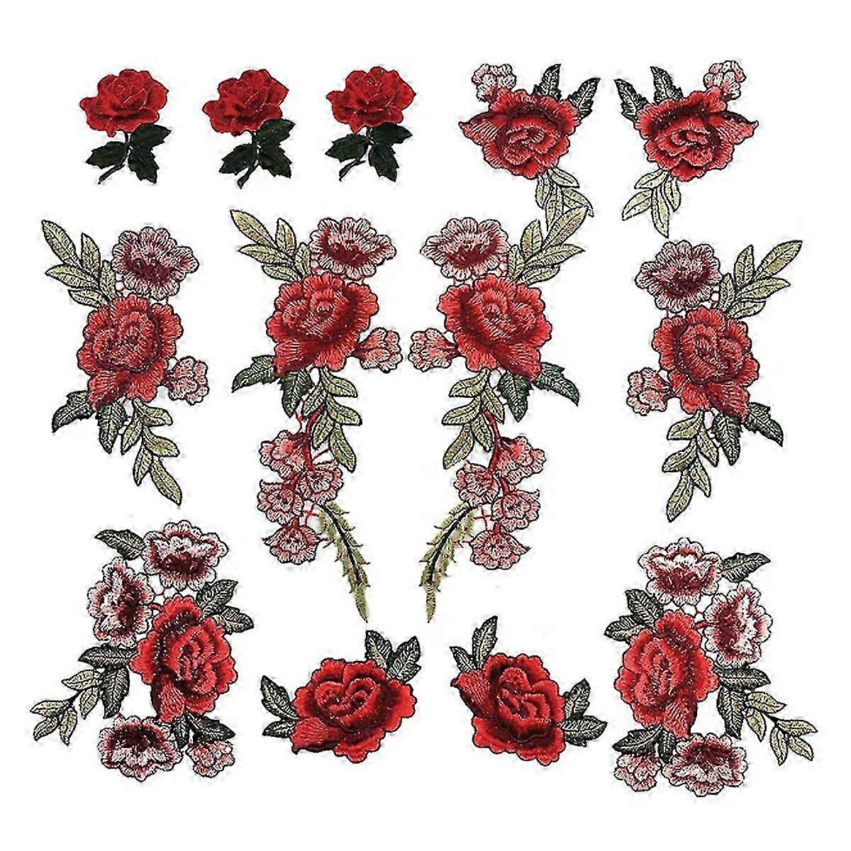 Classic Rose Pattern DIY Sew Decoration Appliques Stickers Set Floral Shaped Embroidery Patches for Clothes Dress Hat Jeans Repair