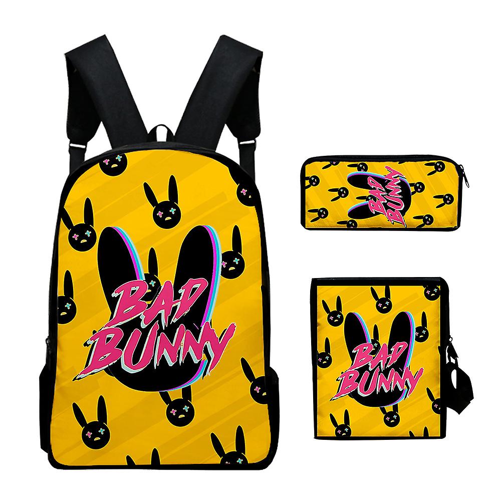 Classic Popular Bad Bunny 3pcs/set Backpack 3d Print Student Large Capacity Bag Travel Laptop Daypack Shoulder Bag Pencil Case