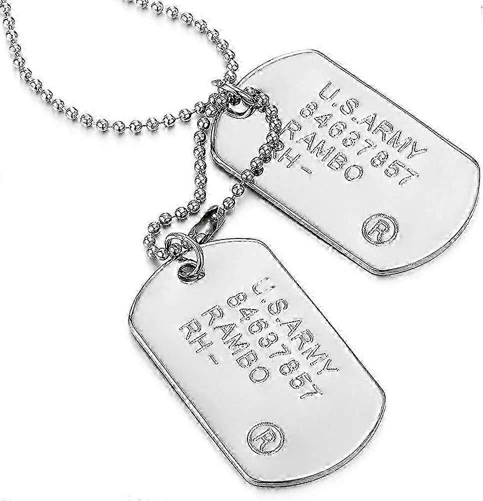 Classic Two-pieces Mens Military Army Dog Tag Pendant Necklace With 28 Inches Ball Chain