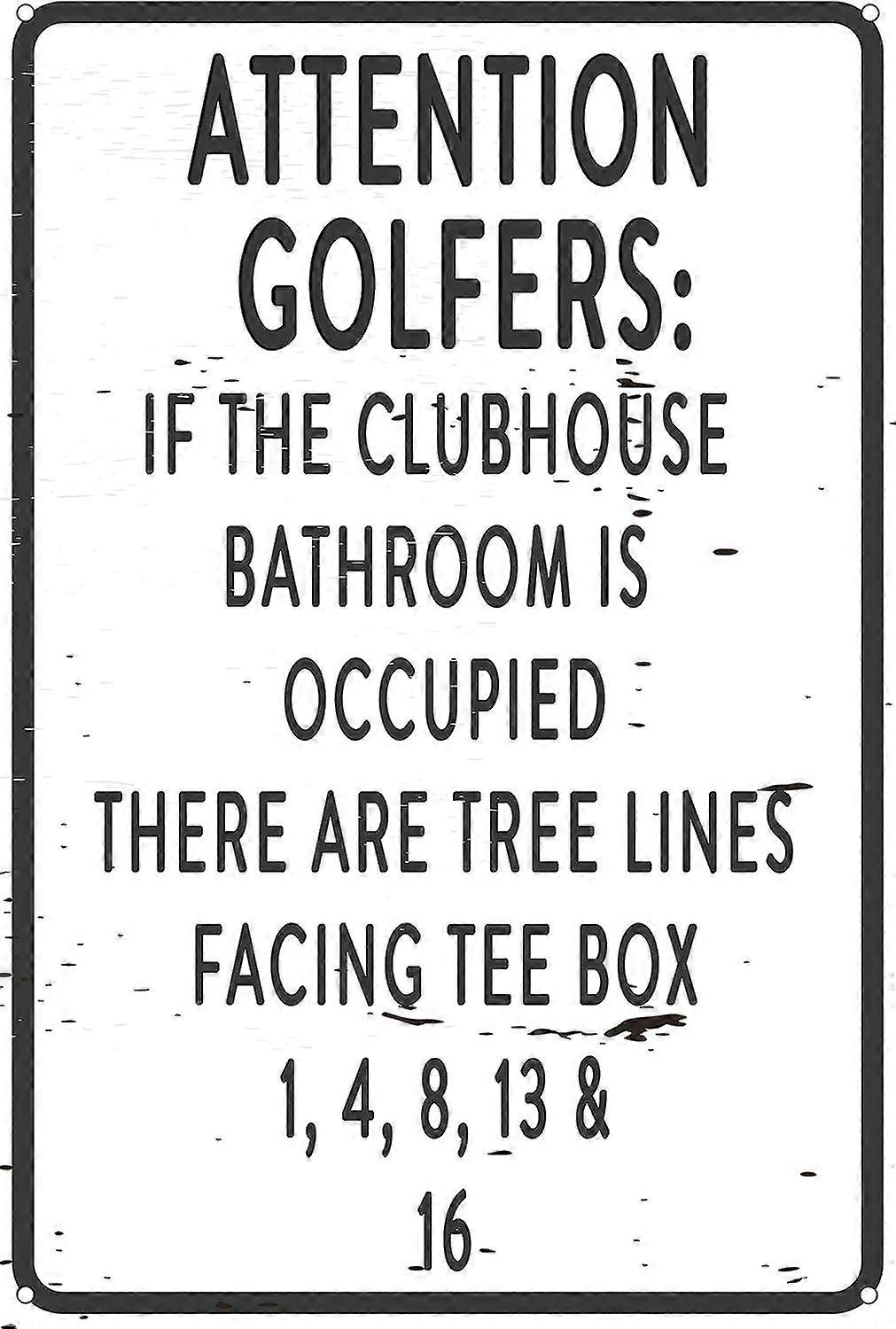 Attention Golfers If Clubhouse Bathroom is Occupied 12" x 8" Funny Tin Golf Theme Bathroom Sign Home Garage Man Cave Sports Bar Decor