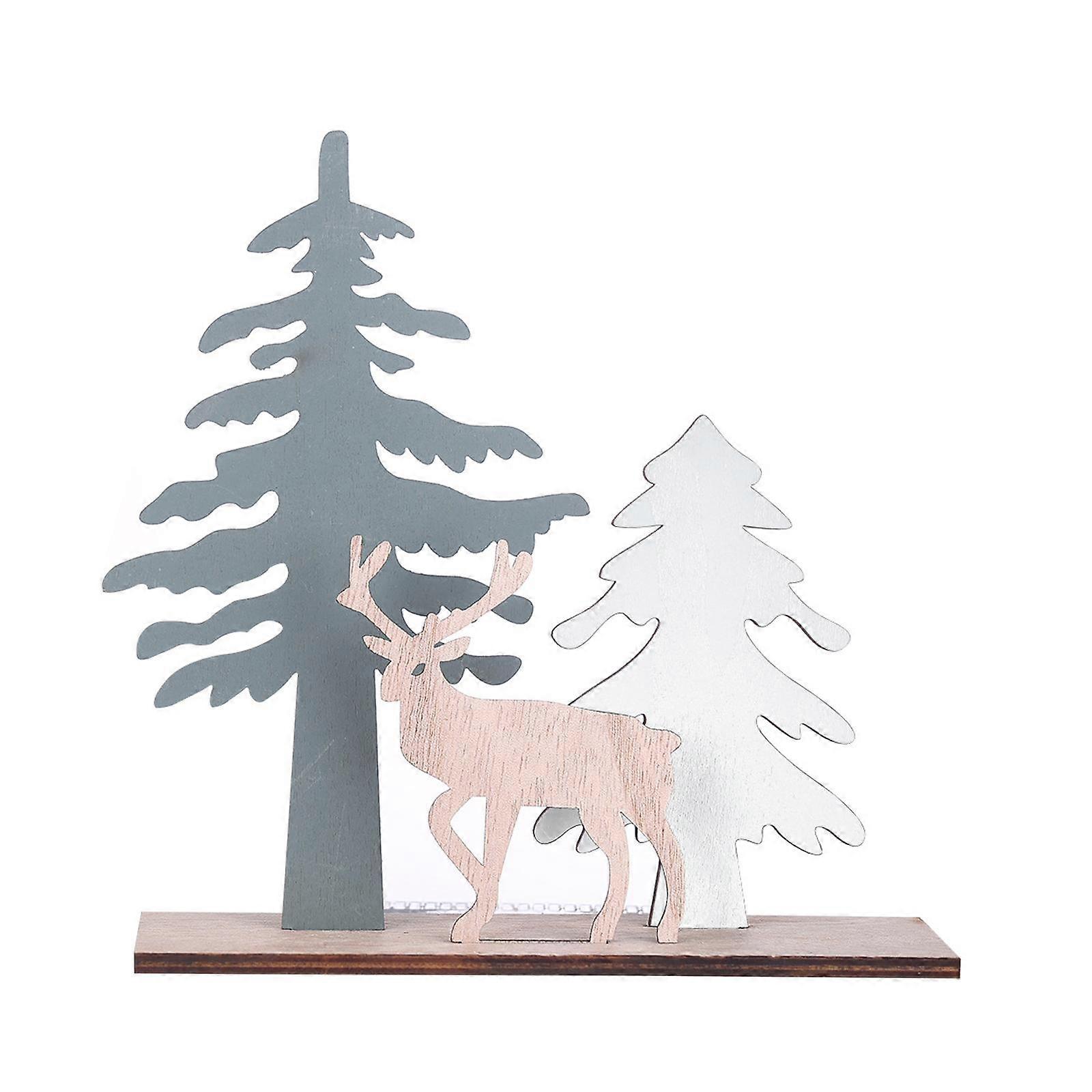 Craft Christmas Tree Artwork Elk Wood for Table Desk Holiday Home Shelf Decor