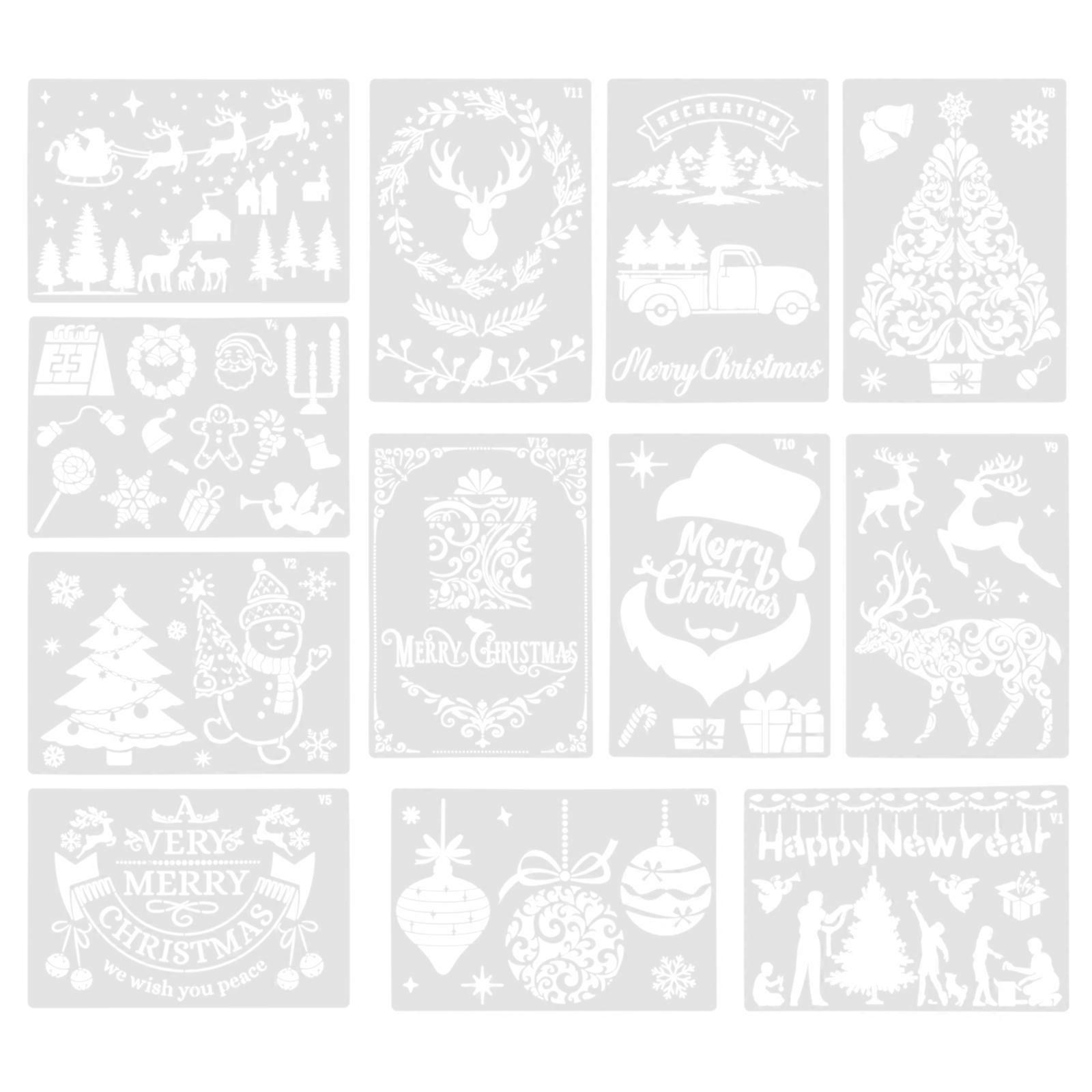 Craft Stencil Set 12Pcs Rectangular Stencil Drawing Templates For Christmas Decorations 26X17.5Cm Made Of Durable PET Material