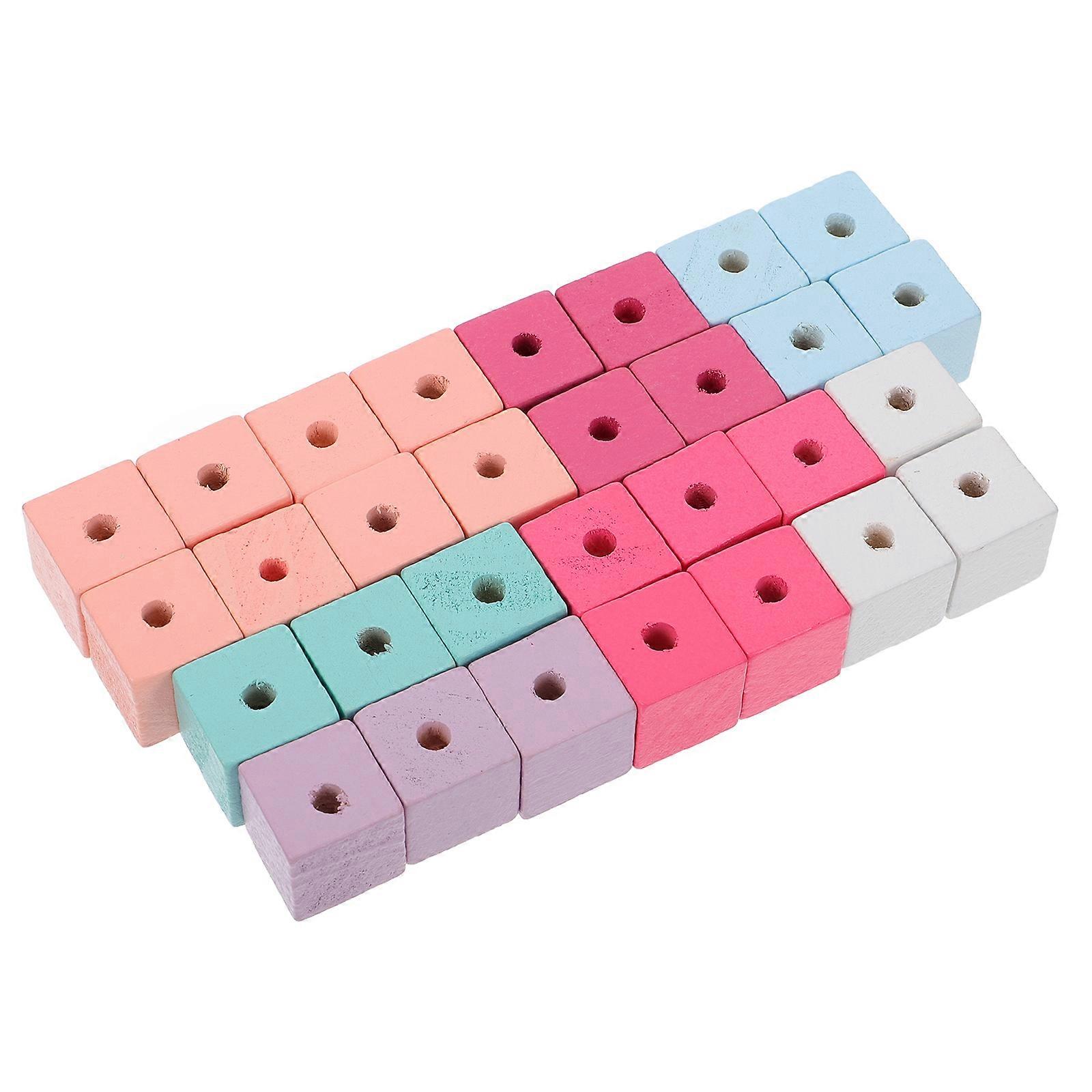 Crafting Beads Wooden Square Simple Design DIY Jewelry Making Bracelet Necklace Assorted Color 1.5X1.5CM 30Pcs