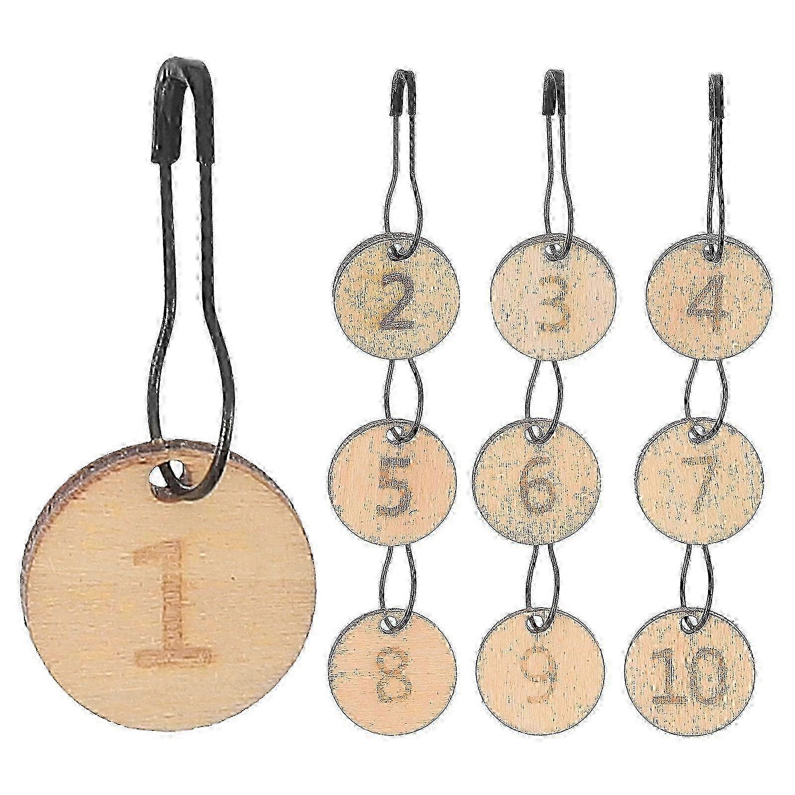10 Piece Wooden Knitting and Crochet Stitch Markers Set Carved for Craft Projects
