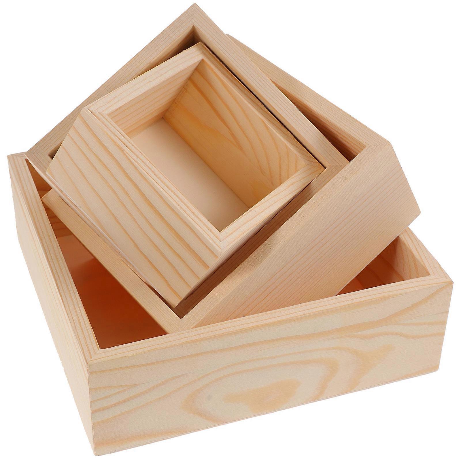 Craft Storage Box 4Pcs Vintage Wooden Containers Ideal For Office Use Square Shape Multipurpose