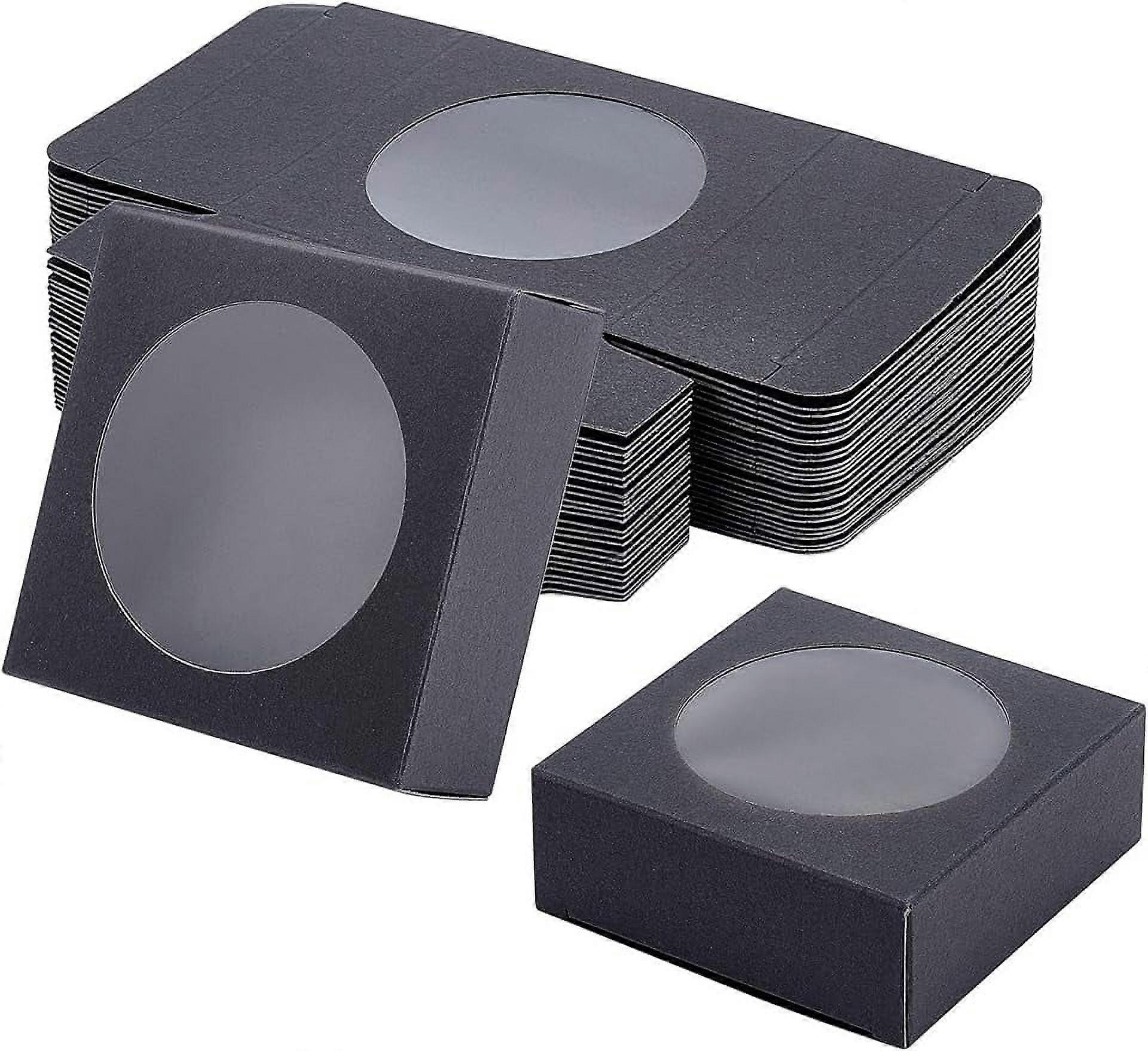 24Pcs Kraft Paper Boxes with Clear Window 3x3x1.2 Black Kraft Gift Packaging Boxes