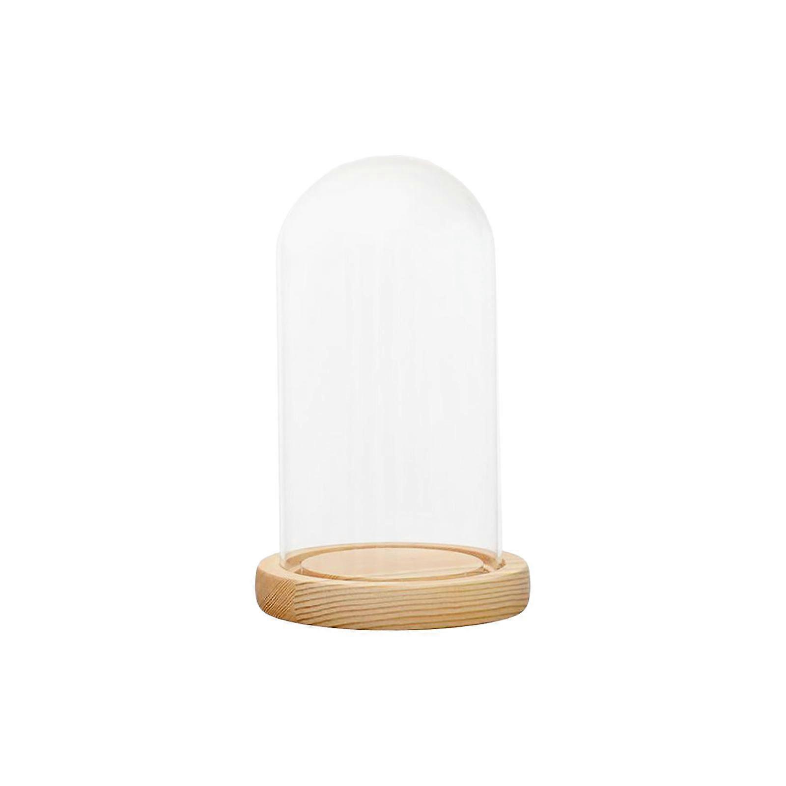 Clear Glass Dome Cover Stand with Wood Base Round Tabletop Centerpiece Dome
