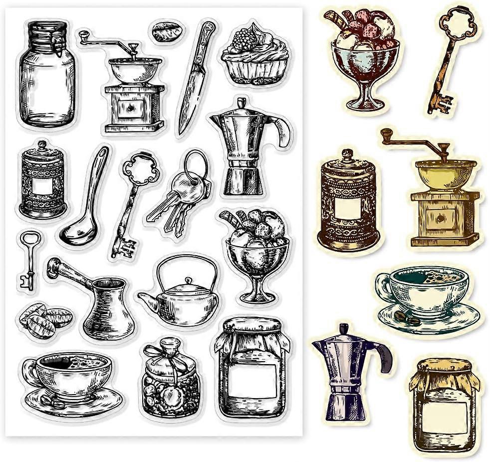 Clear Stamps Kitchen Tools Cups Pot Keys Cook Jars Film Frame Transparent Silicone Stamp Seals for Card Making Journaling Notebook Decor DIY Scrapbook