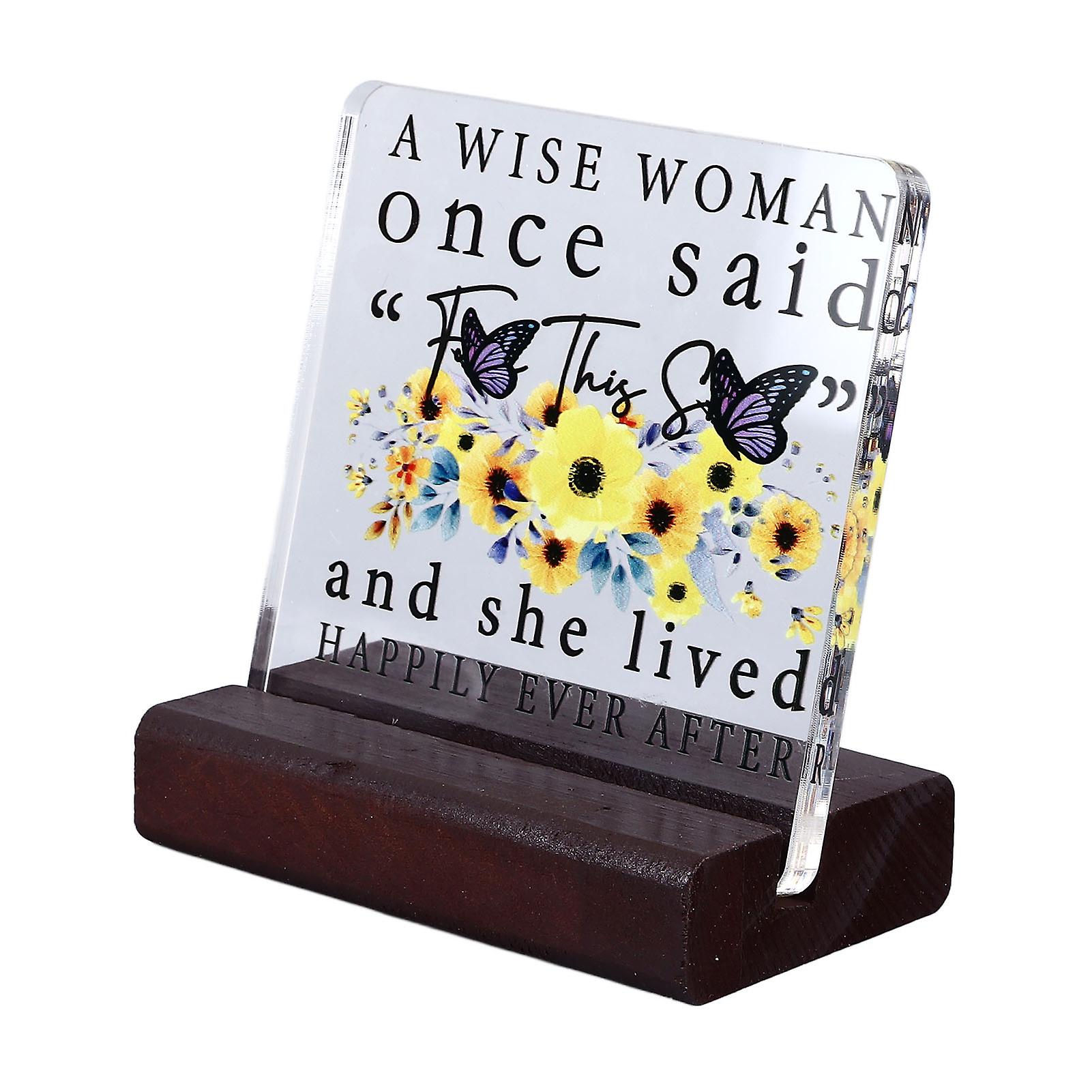 Item Type: Clear Desk Decorative Sign <br>Material: Acrylic, Synthetic Wood <br>Size: Approx. 12x12x0.8cm / 4.72x4.72x0.32in<br>1、RUSTIC STYLE: Innovative wooden acrylic desk decorative sign, rustic vintage style, clear pattern, ideal for desktop decoration. <br>2、INNOVATIVE DESIGN: The clear desk decorative sign is printed with beautiful designs and meaningful sayings to encourage yourself and your friend to face difficulties positively. <br>3、PREMIUM MATERIAL: Clear desk decorative sign's display boards are made of extra thick acrylic, which is durable, not easy to break or fade, and has a long service life. <br>4、RIGHT SIZE: Table sign has the right size to fit the desk, the size is about 12 x 12 x 0.8 cm/4.72 x 4.72 x 0.32 inches, it will not take up too much space, and the size is moderate. <br>5、WIDE SCENES: Clear desk decorative sign is suitable for decorating various scenes, such as placing on coffee table, nightstand, desk, bookshelf, dressing table, etc.1 x&nbsp;Wooden&nbsp;Base<p>1 x&nbsp;Acrylic&nbsp;Plate</p>Manual measurement please allow some error.