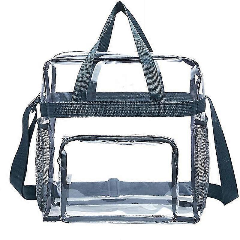 STURDY MATERIAL:Sturdy waterproof PVC makes the clear stadium bag has a good structure and not easy to rip.The mesh of the side pocket is updated to avoid tearing;All the stitching is reinforced with cross-stitching and holds heavy loads safely.The strong nylon handles and adjustable shoulder strap so you can comfortably carry a heavy load.